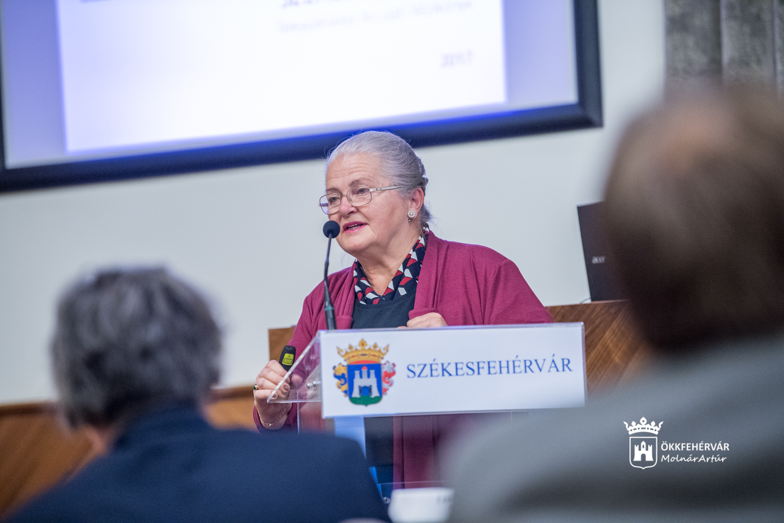 Csutiné Schleer Erzsébet építészmérnök, műemlékvédelmi szakmérnök és a Városszépítő Egyesület alelnöke vetítéssel egybekötött előadásában az érdeklődők részletesen megismerhették a Településképi Arculati Kézikönyv felépítését. Egyes fejezetei segítséget nyújtanak mind a város lakóinak, mind az itt alkotó szakembereknek, hogy megismerjék Székesfehérvár értékeit, mit tart a közösség megőrzendő értéknek, követendő példának.