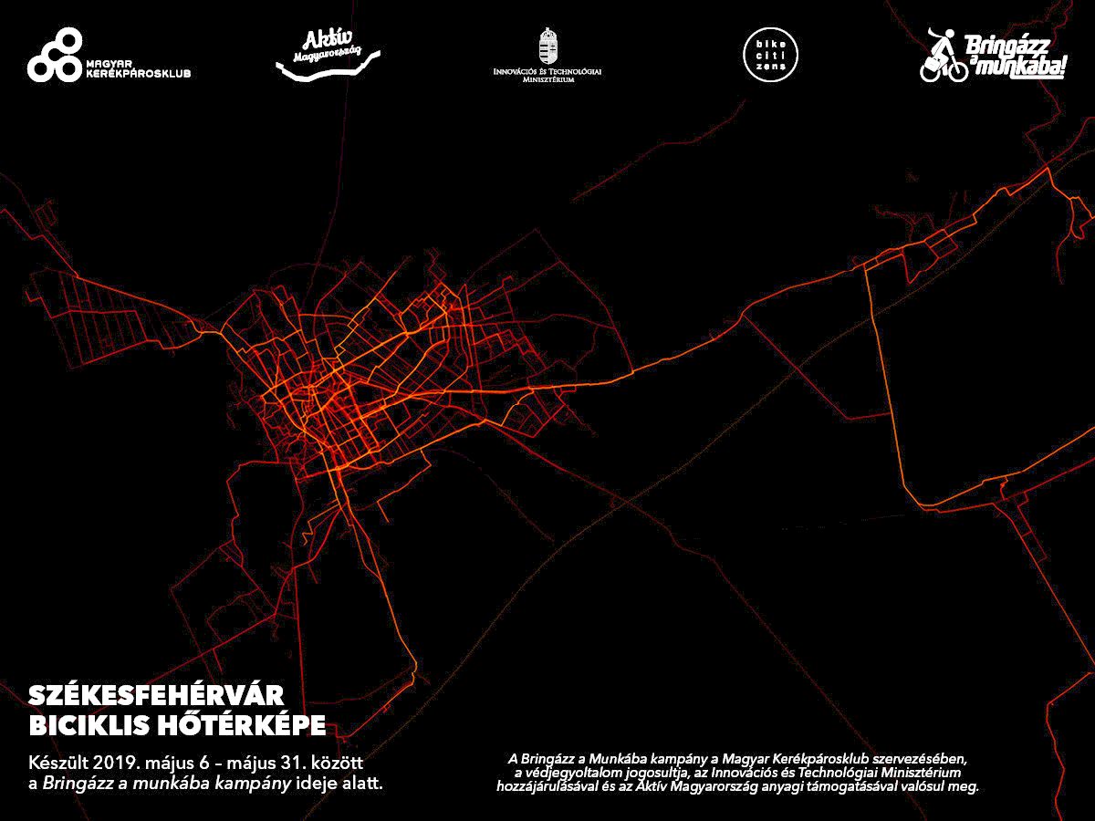 A Magyar Kerékpárosklub által szervezett tavaszi Bringázz a Munkába kampány öt legbiciklisebb városában, köztük Székesfehérváron letekert útvonalakból készített hőtérképekből jól látszik, milyen útvonalakat kedvelnek és melyeket kerülték el a városban kerékpározók.