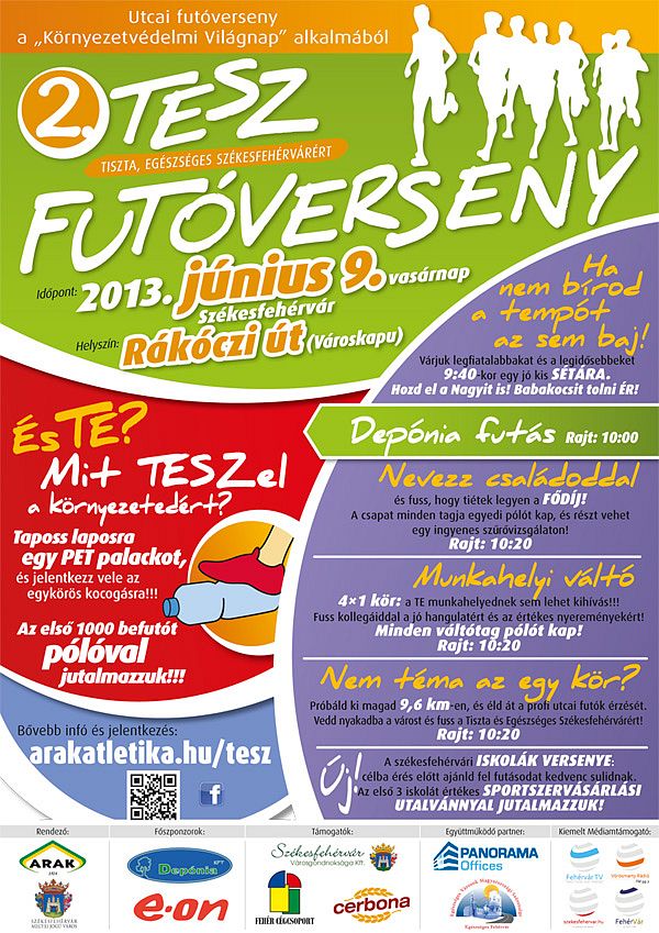 Június 9-én vasárnap rendezik meg a Tiszta Egészséges Székesfehérvárért utcai futóversenyt. Idén a munkahelyi váltók és a családi csapatok valamint az egyéni futók mellett a fehérvári iskolák is értékes díjakért állnak rajthoz. A rendezők idén is szeretnék felhívni a figyelmet a hulladék szelektív gyűjtésére.