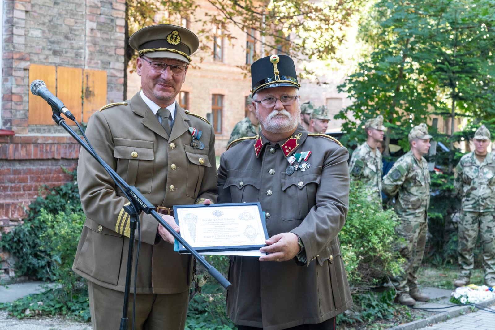 A megemlékezésen a hagyományok megőrzéséért végzett áldozatos munkájáért a Honvéd Hagyományőrző Egyesület tiszteletbeli tagságát vehette át Berdó Gábor Károly nyugállományú százados.