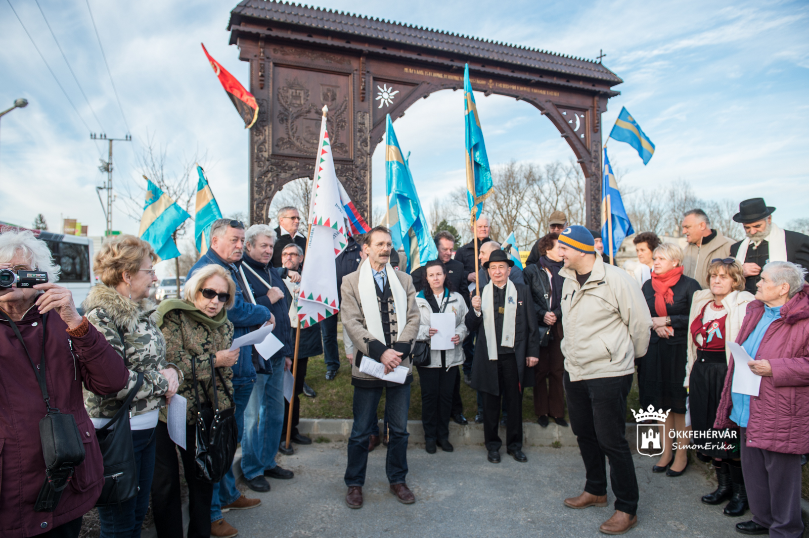 „A székelyek nem csak az ország határait őrizték, védték, hanem a királyi város és a vármegye határait is…Jelképes hely ez azért is, mert kilenc évvel ezelőtt egy „polgári esküvőn”, testvérvárosi kapcsolat köttetett Csíkszereda és Székesfehérvár között, ezt egy évvel később, mintegy „egyházi szertartásként” pecsételte meg a székelykapu felállítása.” - emlékeztetett a Balatoni úti székelykapu tövében Szili Csaba Gergely Fejér megyei önkormányzati képviselő.