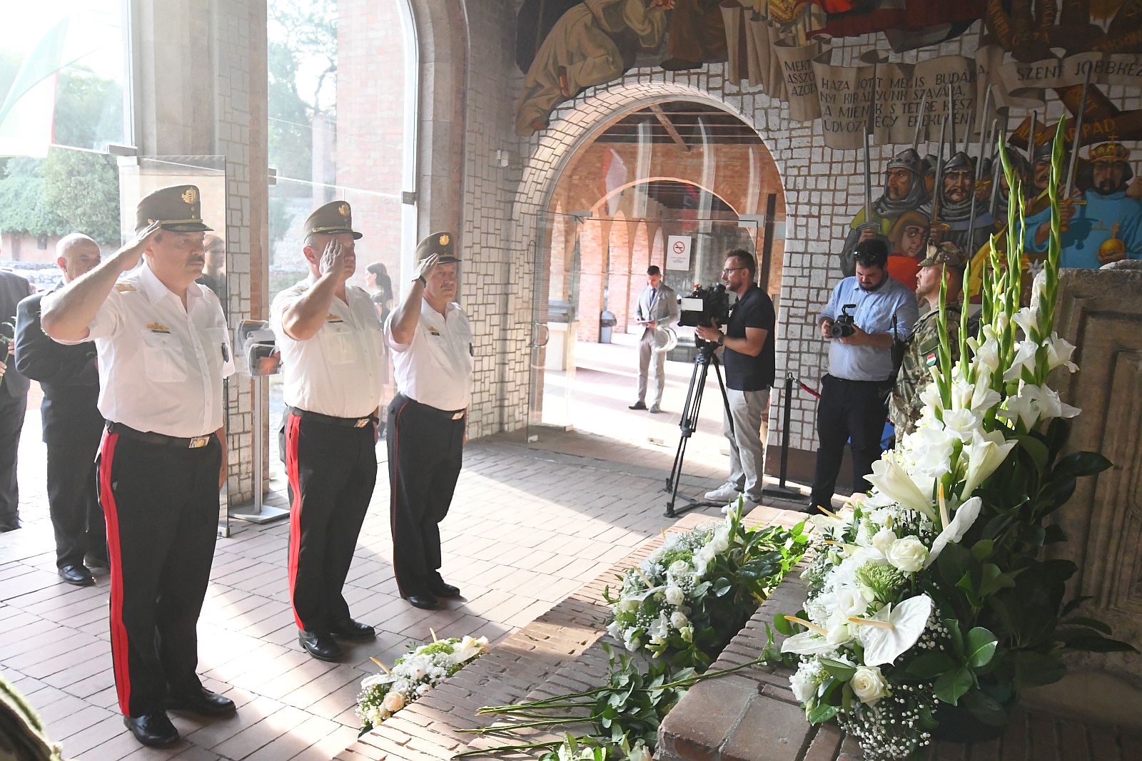 A Honvéd Vezérkar képviseletében Schmidt Zoltán vezérőrnagy, a nemzetközi alakulatok képviseletében pedig Garas László vezérőrnagy tisztelgett Szent István munkássága, élete előtt.