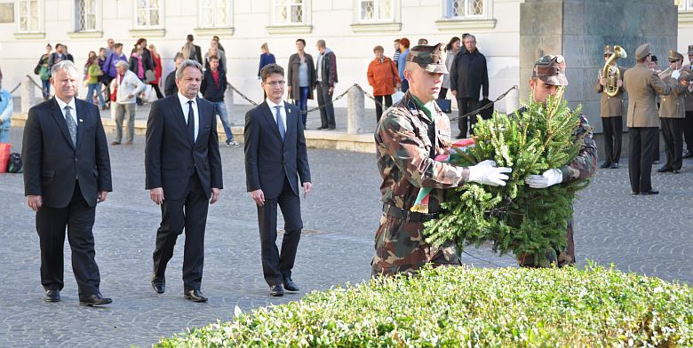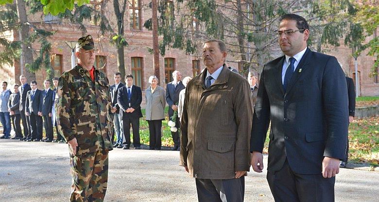 A Budai úti laktanyánál Mészáros Attila tanácsnok, Pleizer Lajos alelnök és Garas László ezredes tartott néma koszorúzást.