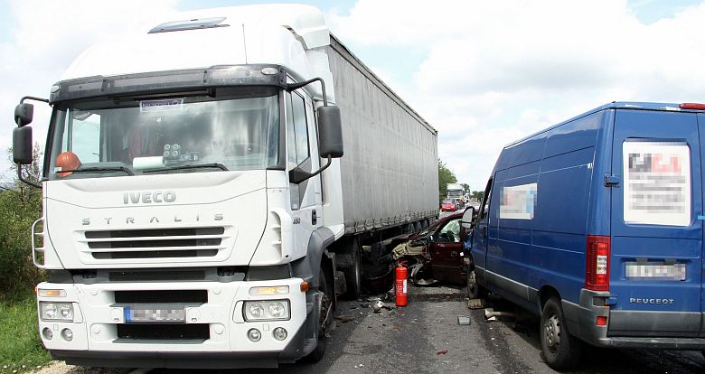 Összesen öt gépjármű, egy nyerges vontató, egy dobozos kisáruszállító és három személyautó ütközött össze a 81-es út 3-4-es kilométere között, Székesfehérvár határában július 31-én, csütörtökön délelőtt. A fehérvári hivatásos tűzoltók és a megyei Katasztrófavédelmi Műveleti Szolgálat kapott riasztást az esethez. A gépjárművek utasai közül a mentők öt könnyű sérültet láttak el a helyszínen, akik közül négyet további ellátásra kórházba szállítottak.