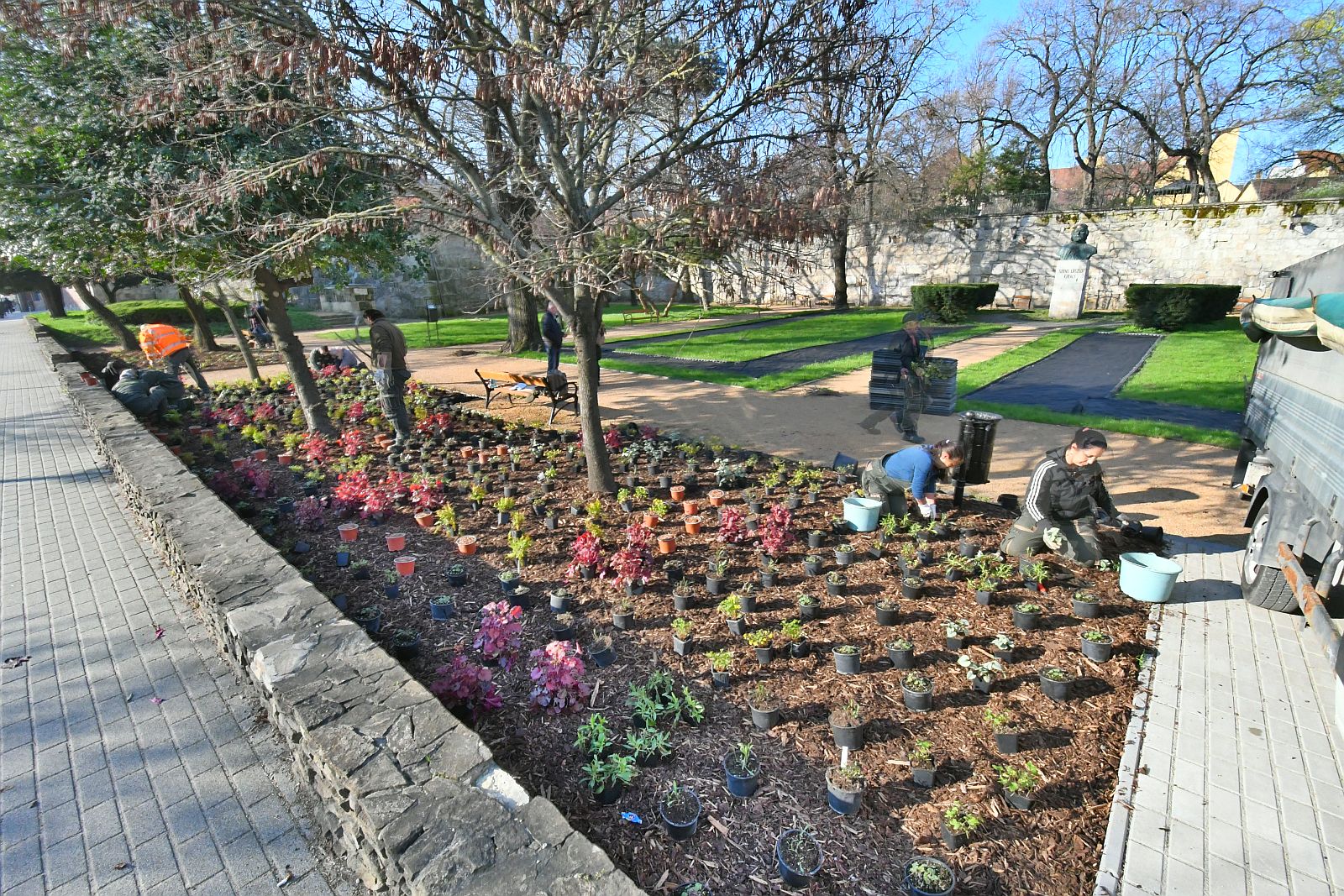 Az egynyári növényeknek kialakított ágyásokban, összesen 270 négyzetméteren 8700 darab növény díszíti majd a parkot.