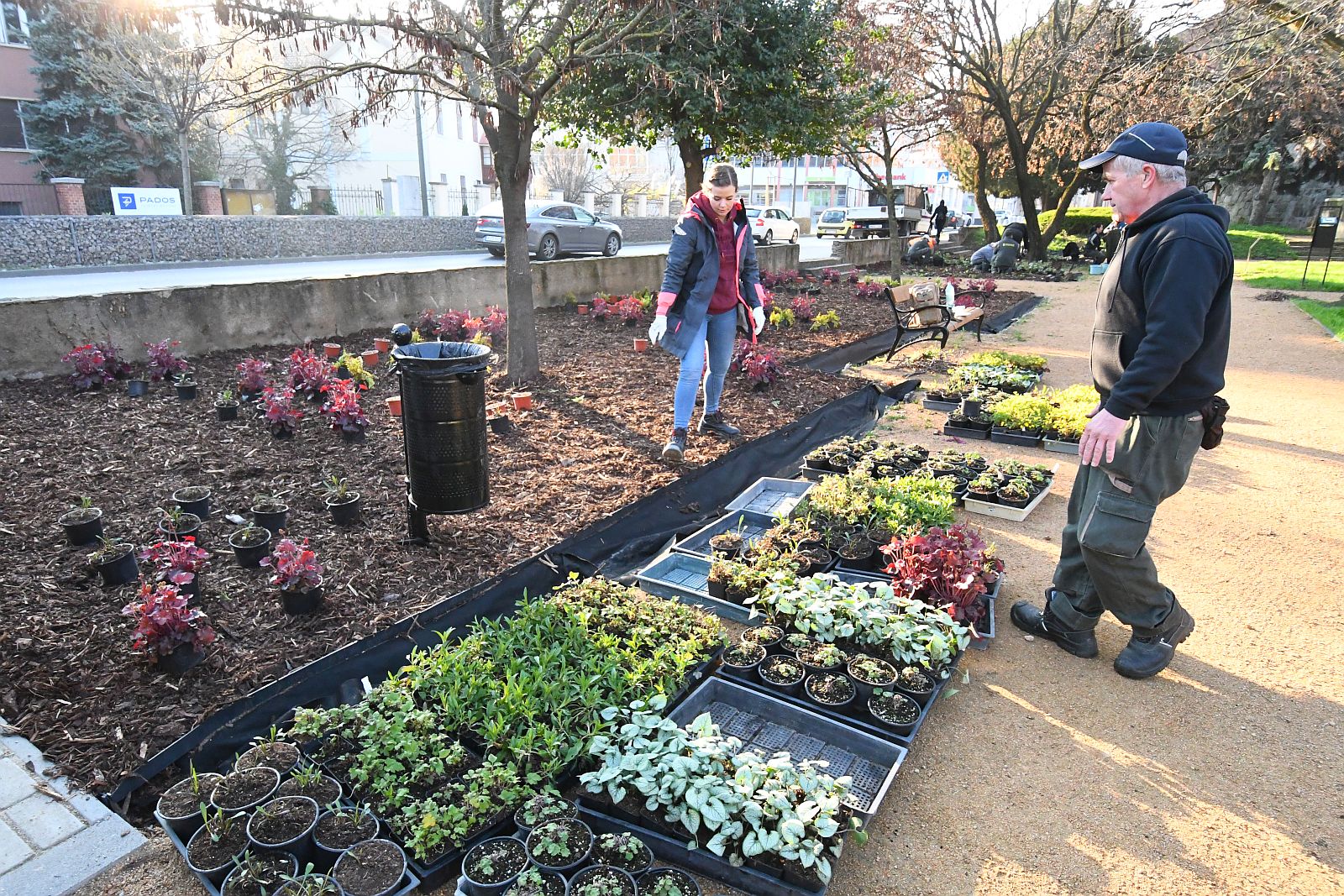 Az egynyári ágyások is egy kicsit nagyobbak lettek a parkban, hiszen a Prohászka ligetnek az egyik színfoltja, hogy körben a fű körül virággal szegélyezett. A Szent László szoborhoz bevezető sétány mentén is két oldalt még egy-egy csíkkal kibővül.