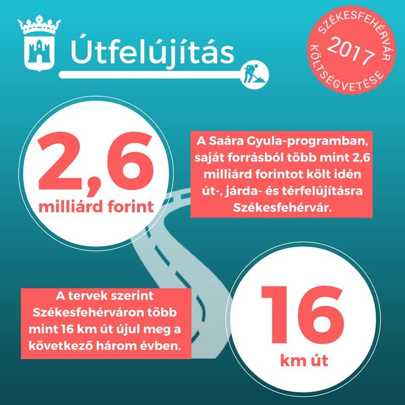 A 2017-es költségvetés-tervezet több mint 2,6 milliárd forintot biztosít a program folytatására, amelyből a következő három évben több mint 16 kilométer út újulhat meg Székesfehérváron. Ha a Közgyűlés pénteken megszavazza a város idei költségvetését, akkor az útberuházások mellett több városrészben járda- és térfelújításokra is sor kerülhet.