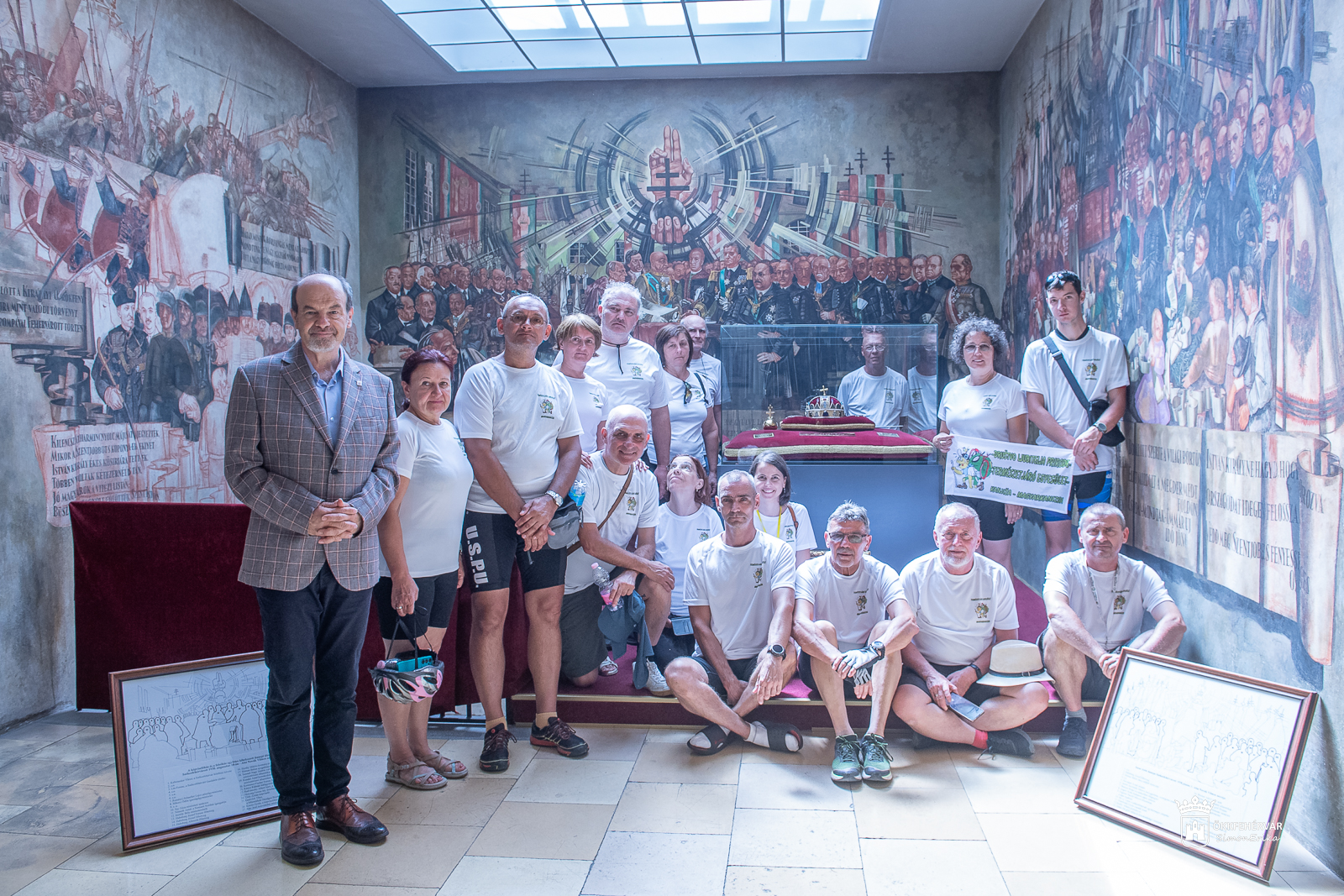 Így természetesen nem maradhatott ki városunk sem a túrából. A negyedik napon, kedden reggel érkeztek Székesfehérvárra, ahol az Aranybulla emlékmű meglátogatása után megkoszorúzták Beszédes József palotavárosi emléktábláját, majd a Városházán fogadta a csapatot Lehrner Zsolt. Az alpolgármester a város és a városháza történelmi és mai szerepéről mesélt, bemutatta a Díszterem nevezetességeit, a Szent Korona hitelesített másolatát.