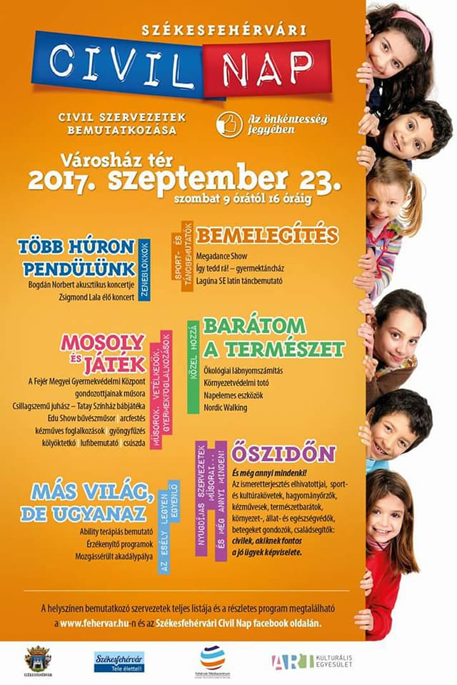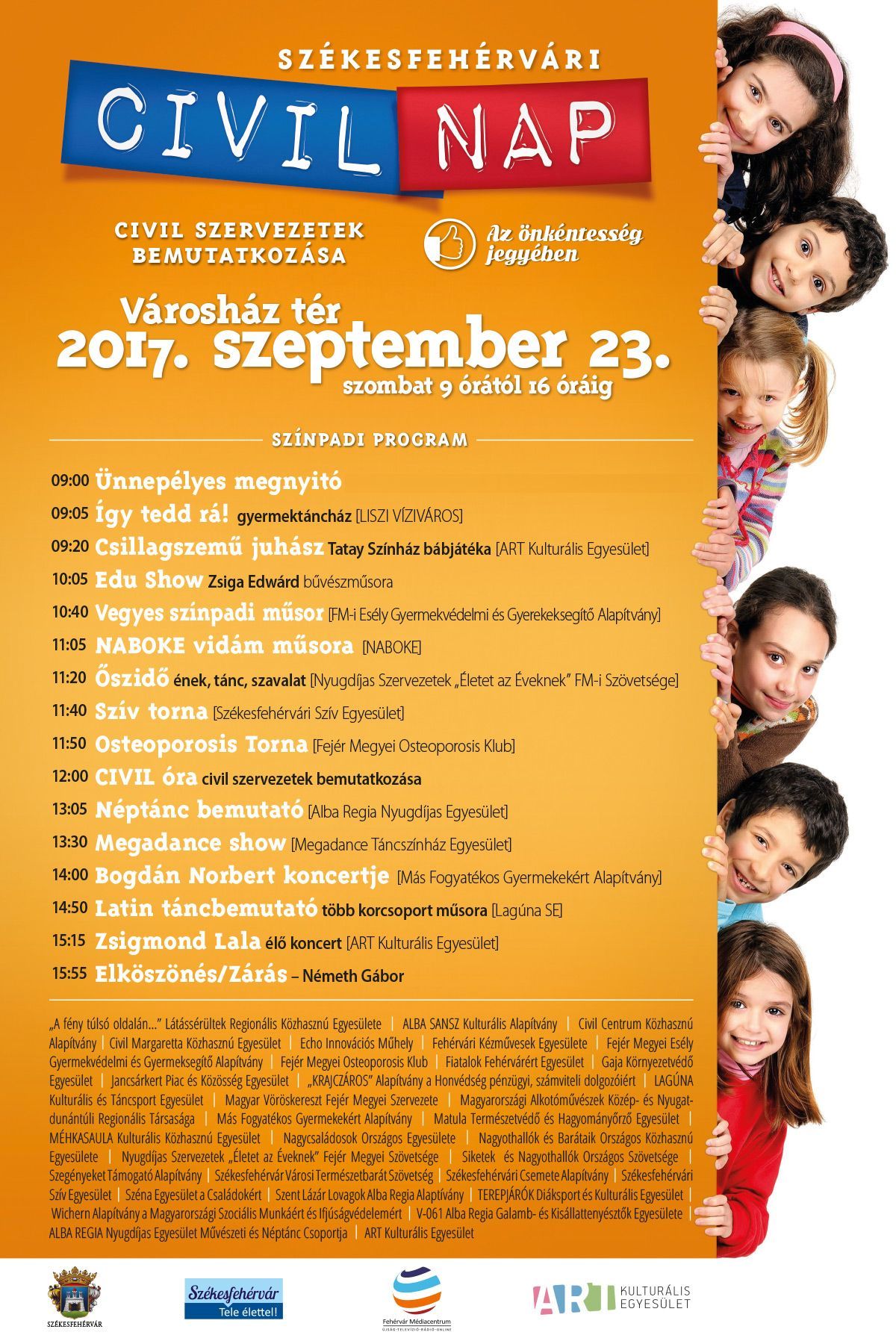 A Civil Nap megnyitója szombaton, 9 órakor kezdődik a Városház téri színpadon, ahol lesznek koncertek, kreatív és szórakoztató gyermekrendezvények, illetve a fogyatékossággal élők világára érzékenyítő programok. A Székesfehérvári Civil Nap szombaton 16 óráig várja látogatóit a Városház téren.
