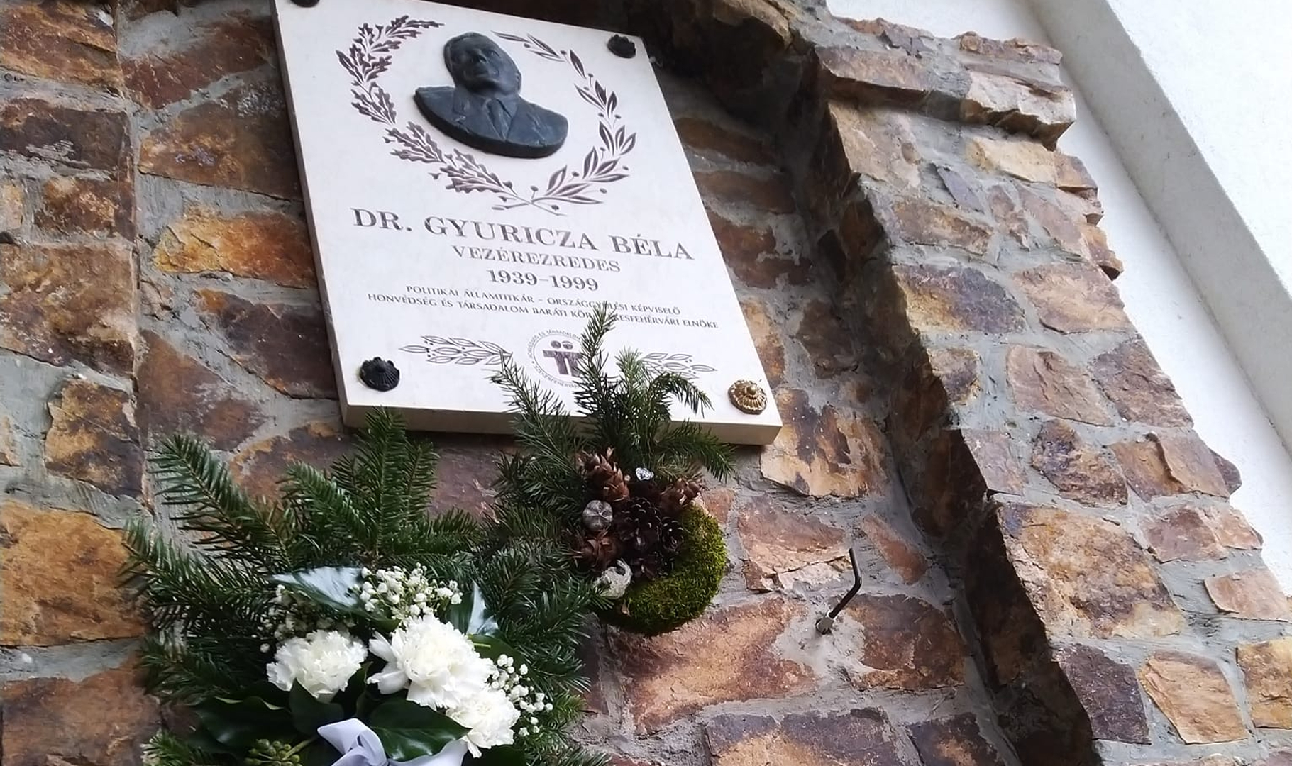 Az évadzárón jelenlévők koszorút helyeztek el az emlékpark megálmodója, Gyuricza Béla vezérezredes emléktáblájánál.