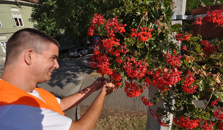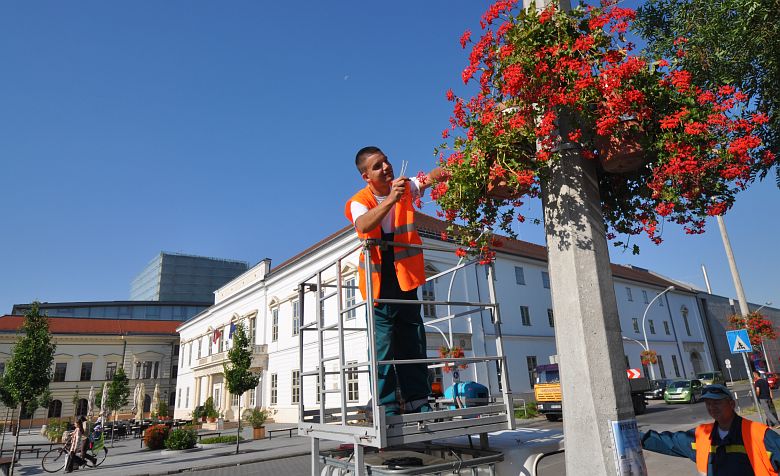 Elektromos kisautóval járják a várost a Városgondnokság kertészei és naponta meglocsolják és metszik a növényeket. A mai napon is mintegy 1200 liter vizet adnak a növényeknek, hogy szépek maradjanak egészen őszig.