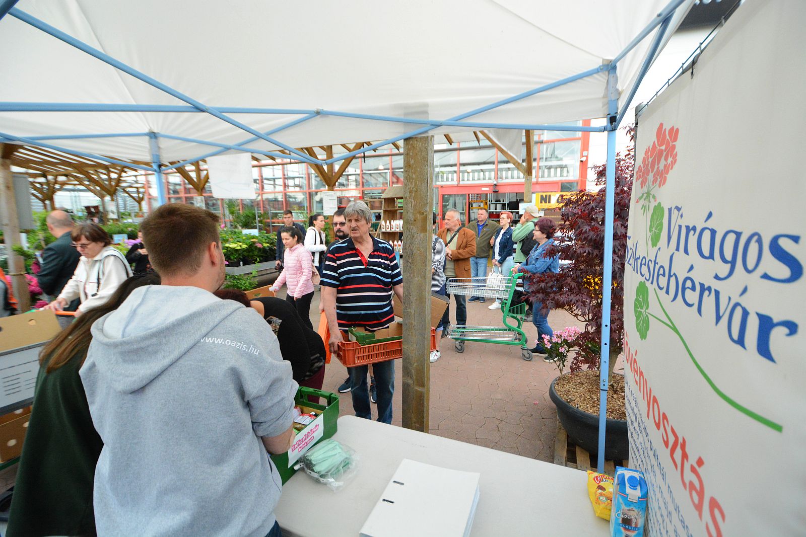 Csütörtökön reggel is folyamatosan érkeztek a Virágos Székesfehérvár pályázat keretében elnyert növények átvételére a fehérváriak. Ekkor látogatott el a Next Stop Üzletközpont Oázis Kertészetébe dr. Cser-Palkovics András polgármester és Bozai István városgondnok is. Május 31-ig minden munkanapon tart a kiosztás, összesen több mint százezer tő növény szépíti majd Székesfehérvár közterületeit, az Önkormányzat és a Városgondnokság nagy hagyományokkal bíró pályázatának köszönhetően.
