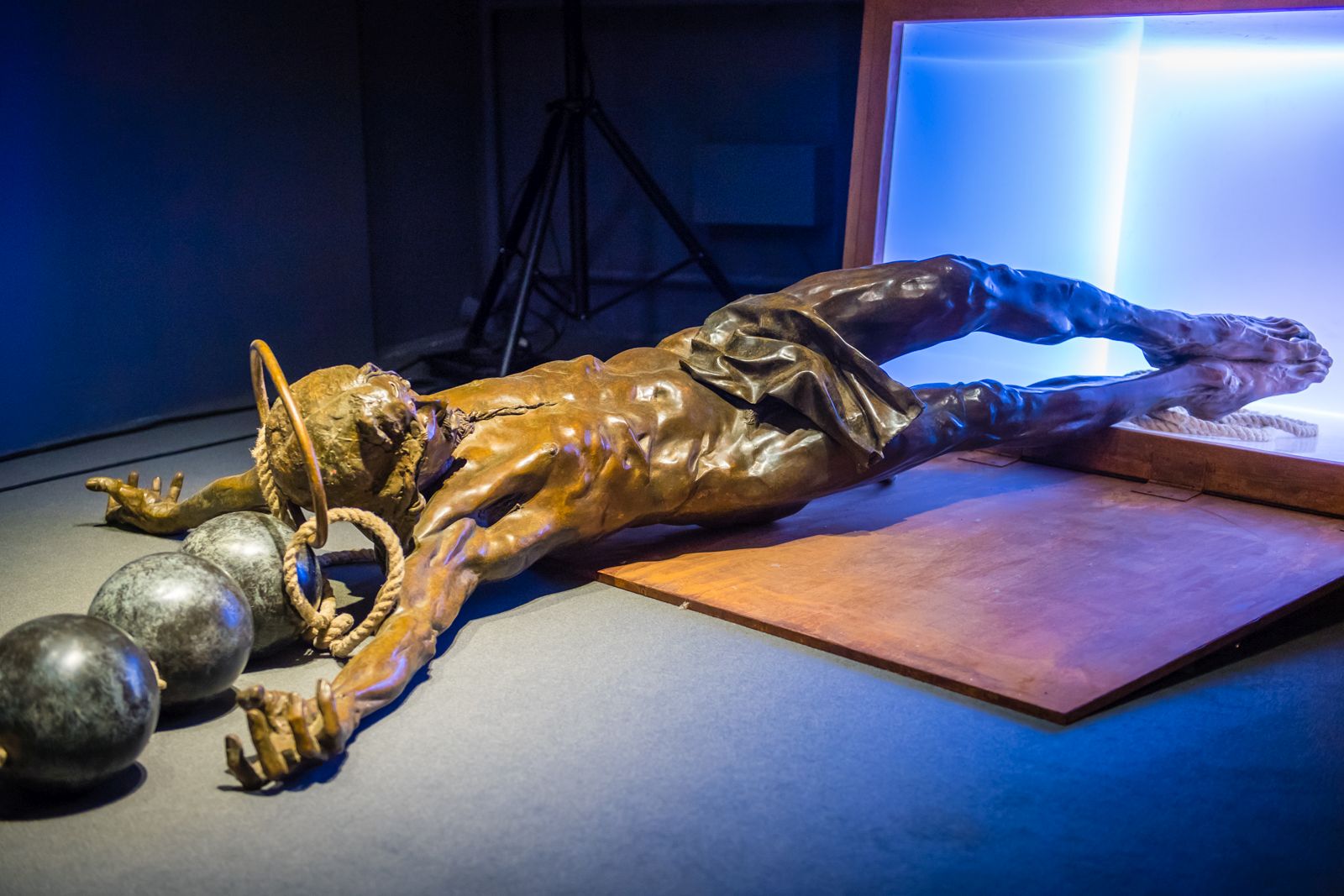 A kiállítás három, térben is elkülönülő tematikus egységre tagolódik: a földszinten a korábbi évek munkái, az úgynevezett élethajók jelennek meg, amelyek az élet, a sors kérdéseit, az embernek szánt feladat keresésének folyamatát állítják a néző elé. A könyvtár előtt a második, szakrális térben a hét főbűn és a hét erény, illetve a rózsafüzér által szimbolizált krisztusi út jelenik meg az alkotásokban. A harmadik egységben pedig a teremtés misztériumát járja körbe, bemutatva a hagyomány és innováció kettősségét.