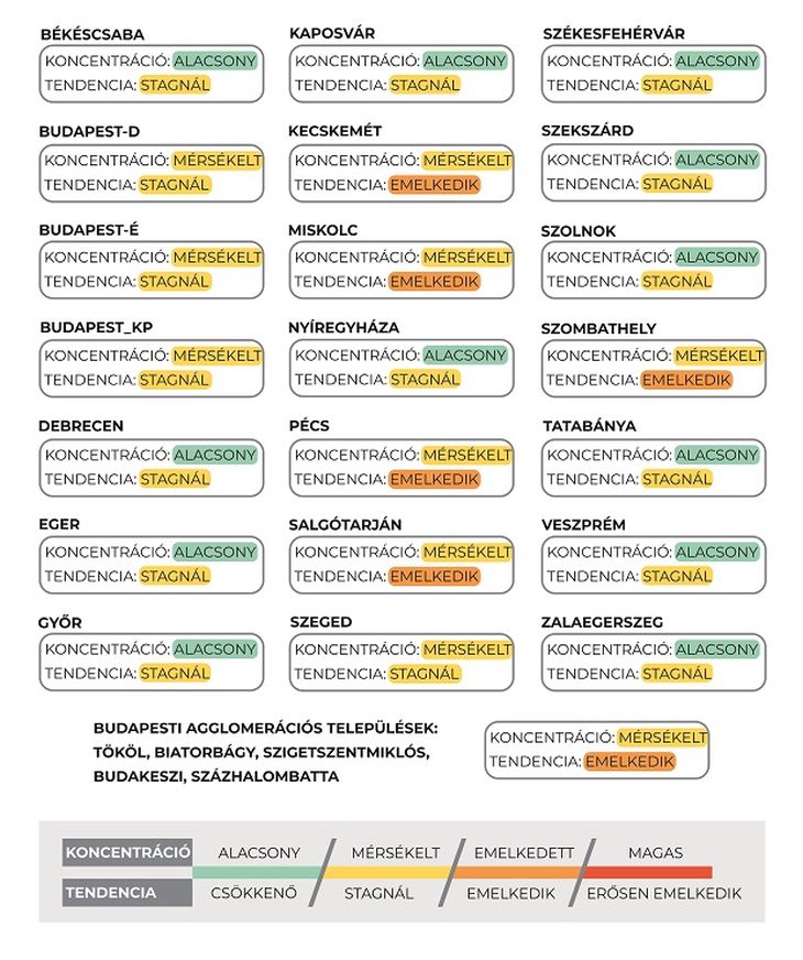A mért koncentrációk 10 mintavételi hely esetében a mérsékelt, míg a többi vizsgált település - többek között Székesfehérvár - esetében az alacsony kategóriába esnek.