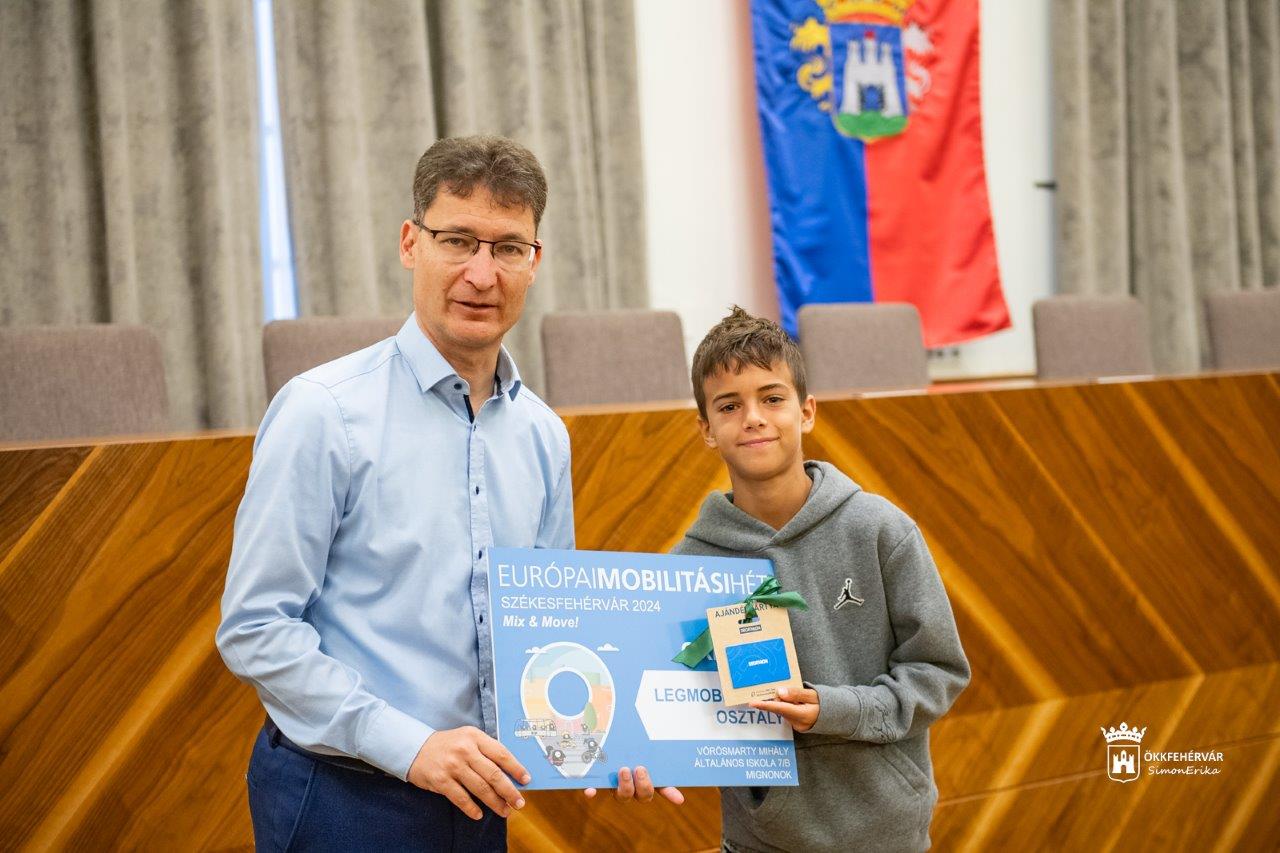 Az iskolásokra idén is izgalmas feladatok vártak a vetélkedőn, amelyen a zsűri azt is nézte, melyik osztály jön a legtöbbféle alternatív közlekedési eszközzel. Slett Csaba, a 7/B osztályfőnöke kérdésünkre felidézte, hogy biciklivel, rollerrel, gördeszkával, görkorcsolyával érkeztek meg a csapat tagjai a Salétrom utcába, a vetélkedő helyszínére. A mostani 7/B egyébként már tavaly is indult a versenyen, ami nagyon jó volt tapasztalat- és tudásgyűjtésnek, ezen kívül az iskolában egy közlekedési kisokost is áttanulmányoztak a gyerekek, így a Mignonok csapatának sikerült a legtöbb pontot megszereznie a közösségi közlekedés szabályait firtató vetélkedőn. A díjat az osztály nevében Nagy Kornél csapatkapitány vette át.