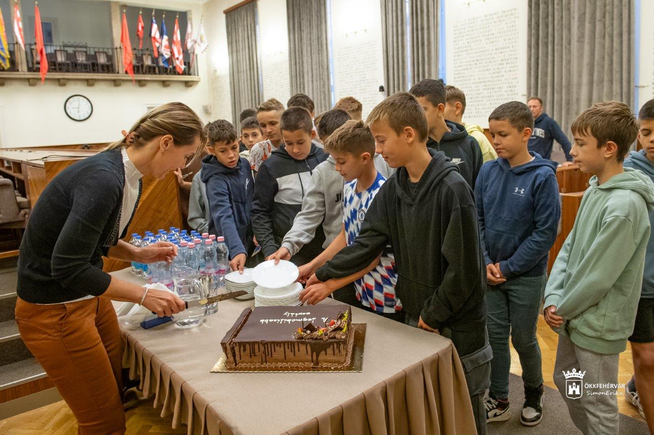 Hatalmas cukrászdává változott péntek kora délelőtt a székesfehérvári Városháza Díszterme, ahol a Vörösmarty Mihály Általános Iskola 7/B osztályát köszöntötte Székesfehérvár polgármestere és a „2024 Legmobilisabb Osztálya” címért folyó versenyt szervező Székesfehérvári Közösségi és Kulturális Központ nevében Igaz Krisztina szakmai vezető.