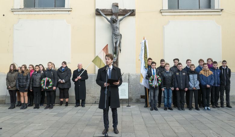 A csütörtöki emlékező események a Hotel Magyar Király előtti téren, a forradalomban elesett fehérvári áldozatok emléktáblájánál értek véget Székesfehérváron. A Ciszterci Szent István Gimnázium által szervezett programon közreműködött az intézmény 11. C osztálya, énekkara, fúvós kara és a 85. számú Zrínyi Miklós cserkészcsapat. A forradalmi dallamokkal és költeményekkel tűzdelt műsorban a fiatalok felidézték a szabadságharc kirobbanásának előzményeit, az október 22-én, a Budapesti Műszaki Egyetemen szervezett viharos tanácskozást és a 16 pontban összefoglalt követeléseket. Életre keltették a zsarnokság ellen intézett október 23-i forradalmi történéseket, majd a szovjet csapatok másnapi bevonulását és a felkelés elfojtására tett kísérletet. A néhány napra szabaddá tett ország ellen november 4-én megindult a szovjet csapatok elsöprő erejű támadása. „… A legázolt, bilincsbe vert Magyarország többet tett a szabadságért és igazságért, mint bármelyik nép a világon az elmúlt húsz esztendőben. Ahhoz, hogy ezt a történelmi leckét megértse a fülét betömő, szemét eltakaró nyugati társadalom, sok magyar vérnek kellet elhullnia…. csak úgy maradhatunk hívek Magyarországhoz, ha soha és sehol el nem áruljuk, amiért a magyar harcosok életüket adták, és soha , sehol – még közvetve sem – igazoljuk a gyilkosokat…” – ezen gondolatokkal zárult a megemlékezés, majd koszorúzásra került sor. Közösen helyezett el koszorút az emléktáblánál Wilmek Tibor, a Fejér Megyei Közgyűlés alelnöke és Molnár Tamás, Székesfehérvár ifjúsági és civil tanácsnoka. Ugyancsak koszorúzott Sinka Jenő, a POFOSZ Fejér megyei Szervezetének elnöke és pártok, civil szervezetek képviselői.