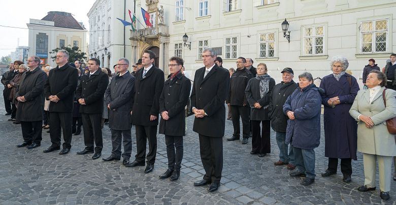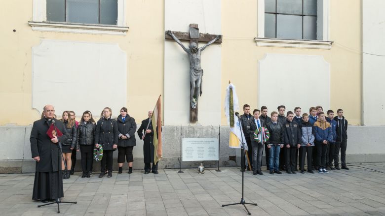 A Szent Imre templomnál a hagyományos megemlékezés keretében a történelmi egyházak helyi képviselőivel együtt megemlékeztek a nemzet kiemelkedő eseményéről, és a jelenlévőkkel együtt imádkoznak a forradalom és szabadságharc áldozataiért. Az idén a Székesegyház felújítása miatt - a Szent Imre templom Fadrusz-keresztjénél tartották meg a megemlékezést az 56-os áldozatokról.