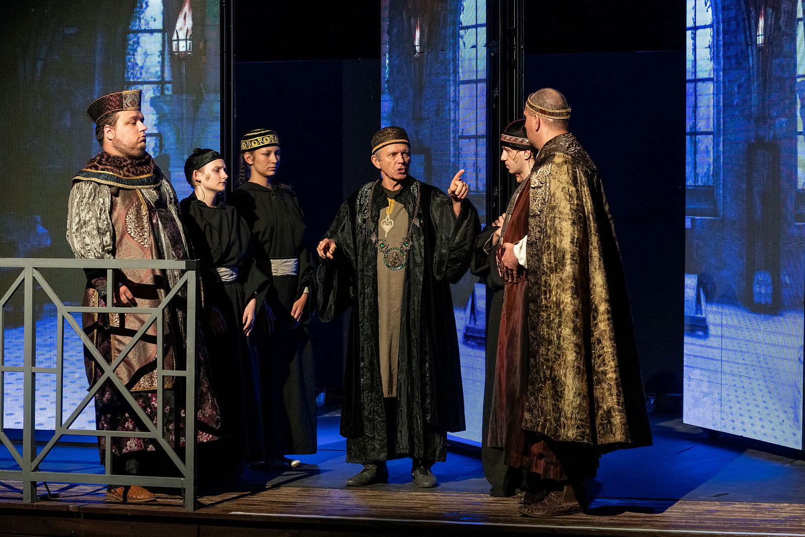 A Vörösmarty Színház művészei és a Kárpát-medencei Színjátszó Tábor fiataljai által közösen színpadra vitt A kiátkozott város című művet dr. Szikora János írta és rendezte. A történet az utolsó Árpád-házi király, III. András 1301-es halálát követő tízéves időszakot mutatta be, amelyet interregnumnak neveznek a történelemkönyvek. Az előadás központi figurája rendhagyó módon nem maga a király, hanem egy városatya, aki a korabeli Székesfehérvár elöljárójaként komoly stratégiai döntést kényszerül meghozni.