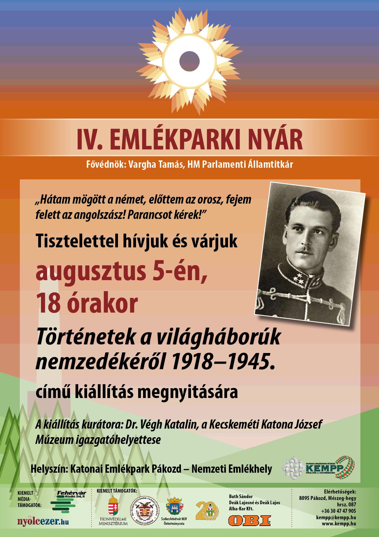 „Történetek a világháborúk nemzedékéről. 1918 - 1945 - 2015” címmel nyílik kiállítás augusztus 5-én 18 órakor a pákozdi Katonai Emlékparkban. A tárlat a II. világháború idején készült műtermi illetve a háború valós pillanatait megörökítő fotóin kívül számos korabeli tárgy bemutatásával emlékezik a II. világháborúra. Szintén augusztus 5-én 19 órától a Military Girls duó koncertjét hallhattják az érdeklődők az emlékpark területén.