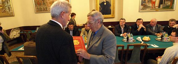 A város polgármestere és a sportegyesületek vezetői a megállapodások aláírása után közösen köszöntötték 75. születésnapja alkalmából Székelyhidi János sportújságírót, aki hosszú éveken keresztül vezette a megyei sportirodát.