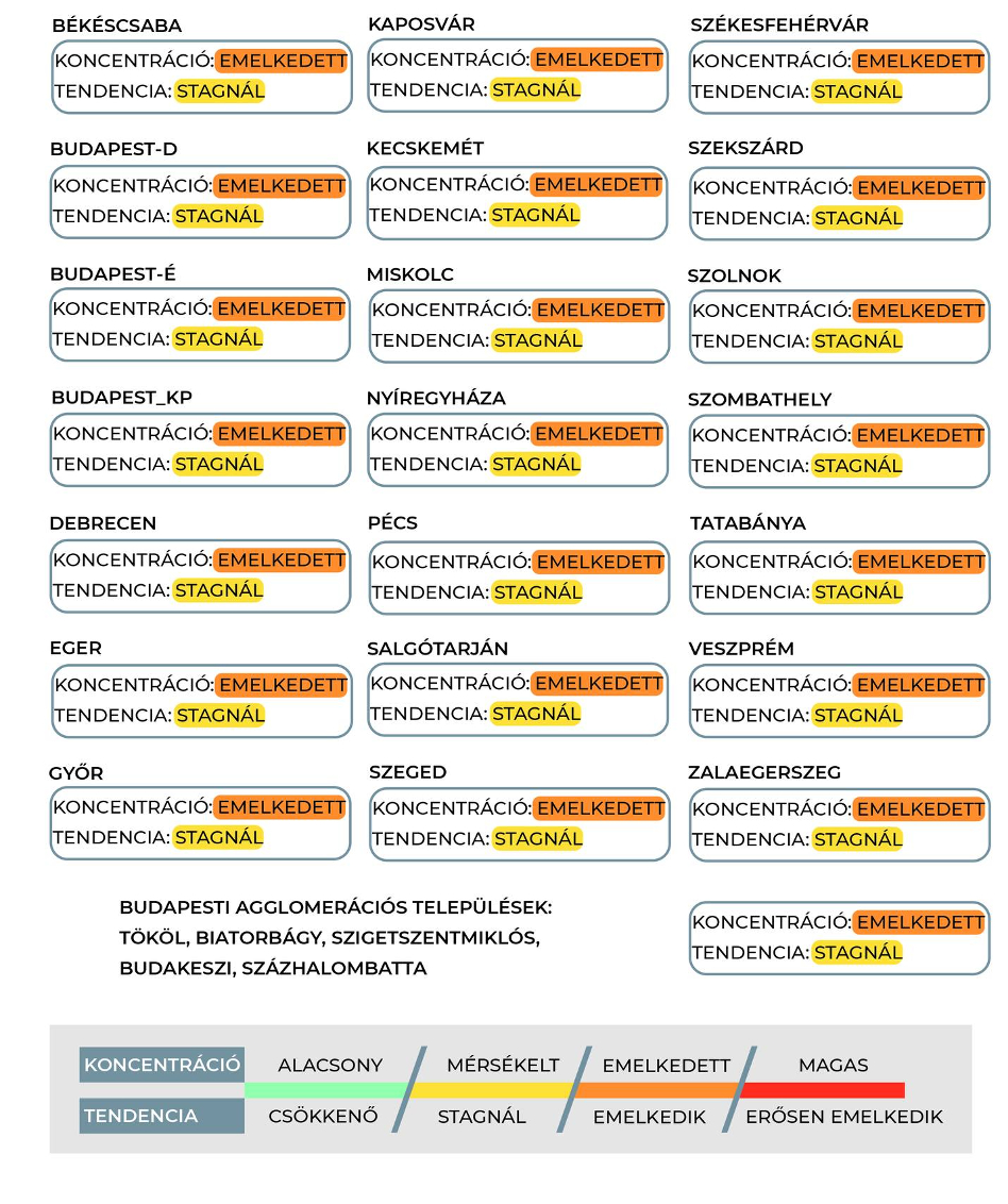A szennyvíz SARS-CoV-2 örökítőanyagának koncentrációja országos átlagban továbbra sem mutat változást, értéke magas szinten stagnál. Számottevő emelkedés vagy csökkenés egyik vizsgálatba vont város esetében sem, így Székesfehérváron sem tapasztalható. A vírus örökítőanyag koncentrációja mindenütt az emelkedett kategóriába sorolható.