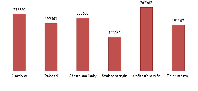 A Fejér megyében jelentkező árváltozások elenyészőek a megyeszékhely statisztikáihoz képest a lakóingatlanok piacán. 2017-et 217 ezer Ft-os átlagos négyzetméterárral zárta a megye, továbbá a 2015 és a 2017 decembere közt eltelt időszak 22%-os növekedést mutatott, míg Székesfehérvárott ennek az értéknek kétszerese figyelhető meg. Ez az állapot magyarázható Fehérvár kiemelkedő gazdasági teljesítményével is az utóbbi időszakban - írják az elemzésben.