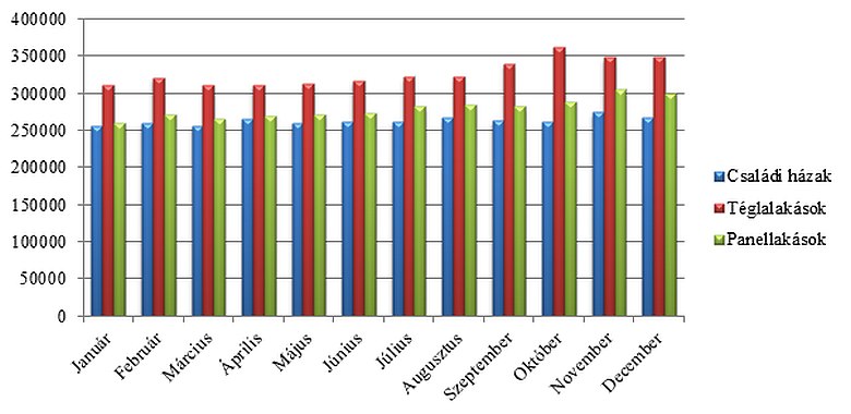 A lakóingatlanok különböző típusok szerinti vizsgálata is hasonló következtetések levonására ad lehetőséget. 2015 óta a családi házak átlagos árai négyzetméterenként 204 ezer Ft-ról 268 ezer Ft-ra változtak 2017 decemberére, melyek a város összesített statisztikáihoz képest viszonylagosan kisebb növekedésről tanúskodnak. Ellenben a téglalakások és a panellakások körében sokkal drasztikusabbak az ingatlanpiaci tendenciák, ahol az utóbbi négyzetméterenkénti átlagos árainak változása eléri a 60%-ot, melyhez képest a lakóingatlanok összesített árainak emelkedése is eltörpül.