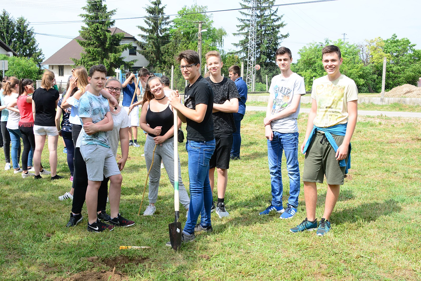 A Városgondnokság a faültetésre rendbe tette a területet, ahol május elején a Kossuth felsős diákjai, most pedig az elsősök és a püspökkertvárosi óvodások segítettek az ültetésben.