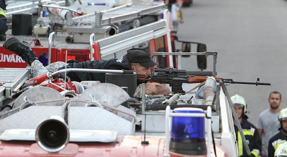 A hőhatásnak kitett acetilén gázpalackot visszahűteni már nem lehet, ezért a tűzoltásvezető a rendőrség mesterlövészeinek segítségét kérte, akik a reggeli órákban a helyszínen hatástalanították a gázpalackot.
