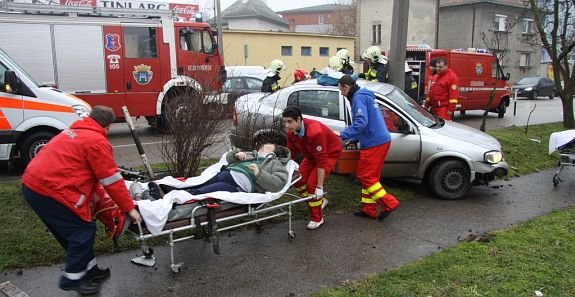 A Királysoron egy személygépkocsi az út menti lámpaoszlopnak csapódott. Az autóban hárman ültek, a sofőrt a tűzoltók szabadították ki a roncsok közül. A Budai út felől érkező Opel Astra felhajtott a padkára, kidöntött több terelőoszlopot majd a bal oldalával egy beton lámpaoszlopnak csapódott. Az Opelban hárman ültek. Az autót vezető férfit a tűzoltók feszítő-vágó berendezéssel szabadították ki a roncsok közül.