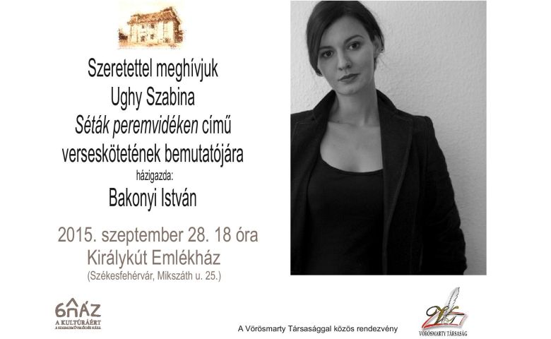 2015. szeptember 28-án, hétfőn este mutatják be Ughy Szabina "Séták peremvidéken" című verseskötetét. A kulturális programon az est házigazdája, Bakonyi István József Attila-díjas irodalomtörténész beszélget a szerzővel. Az esemény hétfőn este 18.00 órakor kezdődik a Királykút Emlékházban (Székesfehérvár, Mikszáth u. 25.).