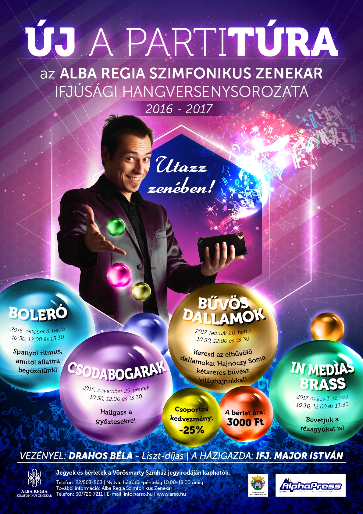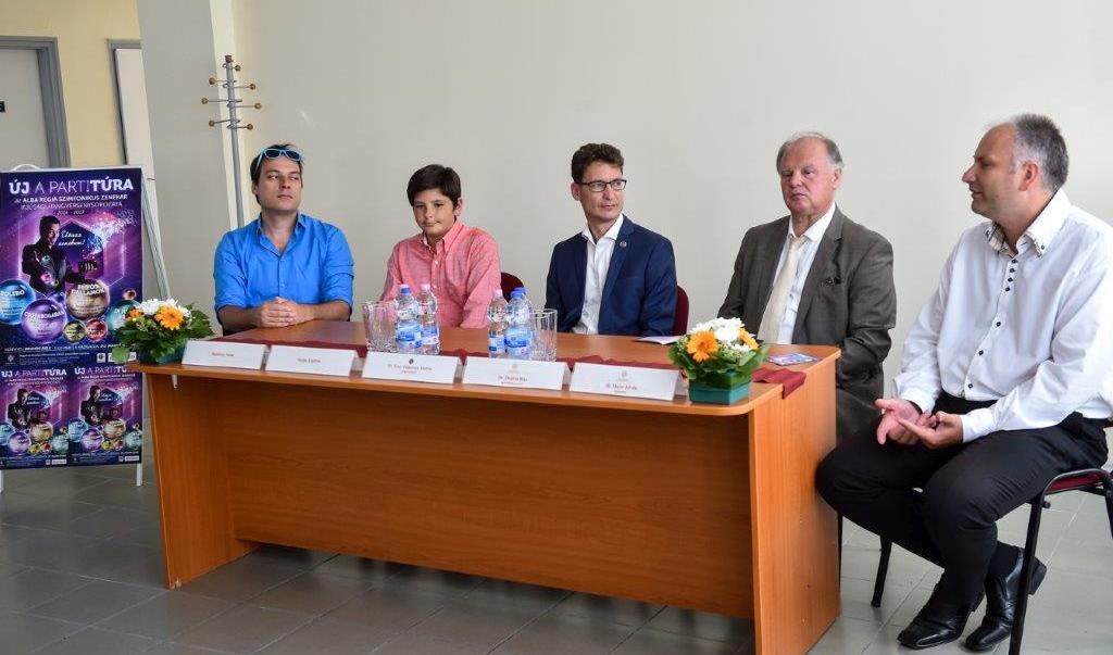A Kodolányi volt főépületében, az Alba Regia Szimfonikus Zenekar új otthonában tartották az Új Partitúra ifjúsági hangversenysorozatot bemutató sajtótájékoztatót. Idén egy különleges hangversenysorozatot indít a zenekar, melynek egyik sztárja Hajnóczy Soma kétszeres bűvész világbajnok lesz, aki a zene mellett mutatványaival is elvarázsolja majd a gyerekeket.