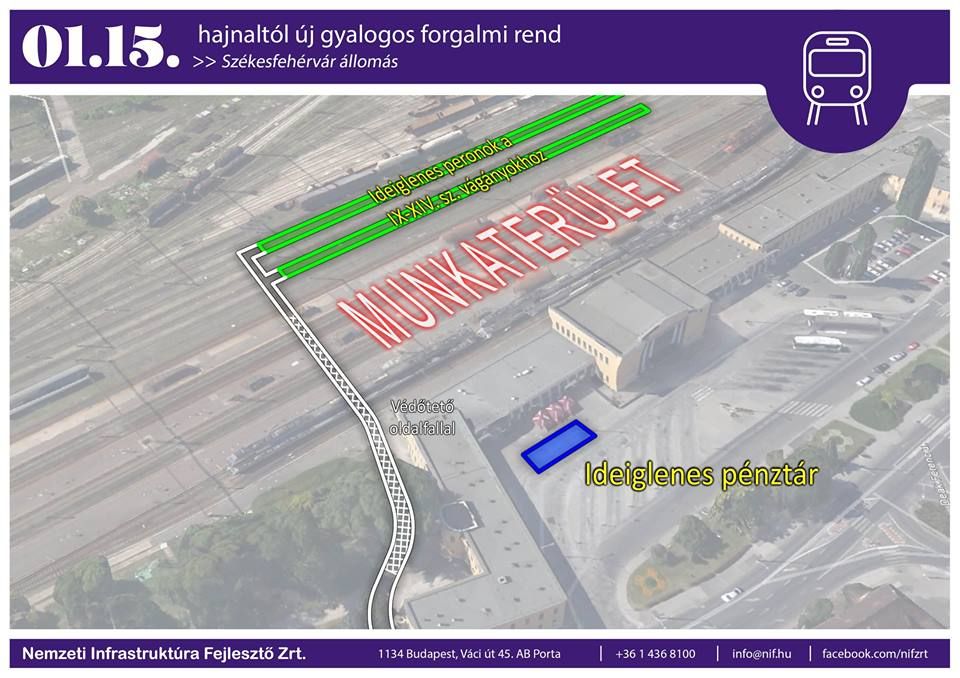 Január 15-én hajnali 03.40-től, az első vonat indulásától, már az új, védőtetővel és oldalfallal ellátott gyalogos közlekedési utat lehet használni a felújítás alatt álló vasútállomáson. Az utasok csütörtöktől már nem vehetik igénybe a jobb oldali aluljárót és csak a bal oldalról közelíthetőek meg az ideiglenes vágányok az építkezés ideje alatt – tájékoztatott a Nemzeti Infrastruktúra Zrt.