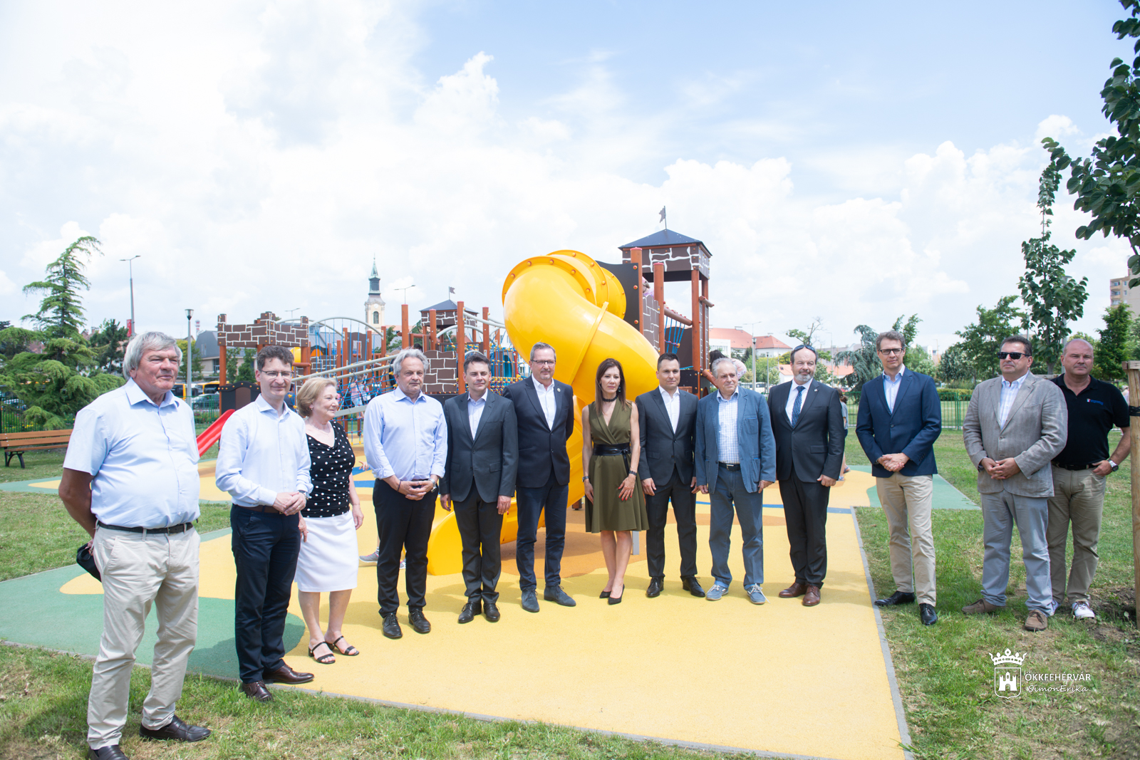 A játszótér átadáson jelen volt Vargha Tamás, Székesfehérvár országgyűlési képviselője, Farkas László és Szabó Bakos Györgyné önkormányzati képviselők, Katus István, a Howmet-Köfém Kft. vezérigazgatója, Varga Zsuzsanna, az Arconic-Köfém Mill Products Hungary Kft. ügyvezetője, Frank Iepema, a Hydro Extrusion Hungary Kft. ügyvezető igazgatója és Kiss Szabolcs, az Alcoa Shared Services Hungary Kft. ügyvezető igazgatója, Laufer Tamás, az Alba Innovár vezetője, valamint Bozai István városgondnok és Lehrner Zsolt alpolgármester.
