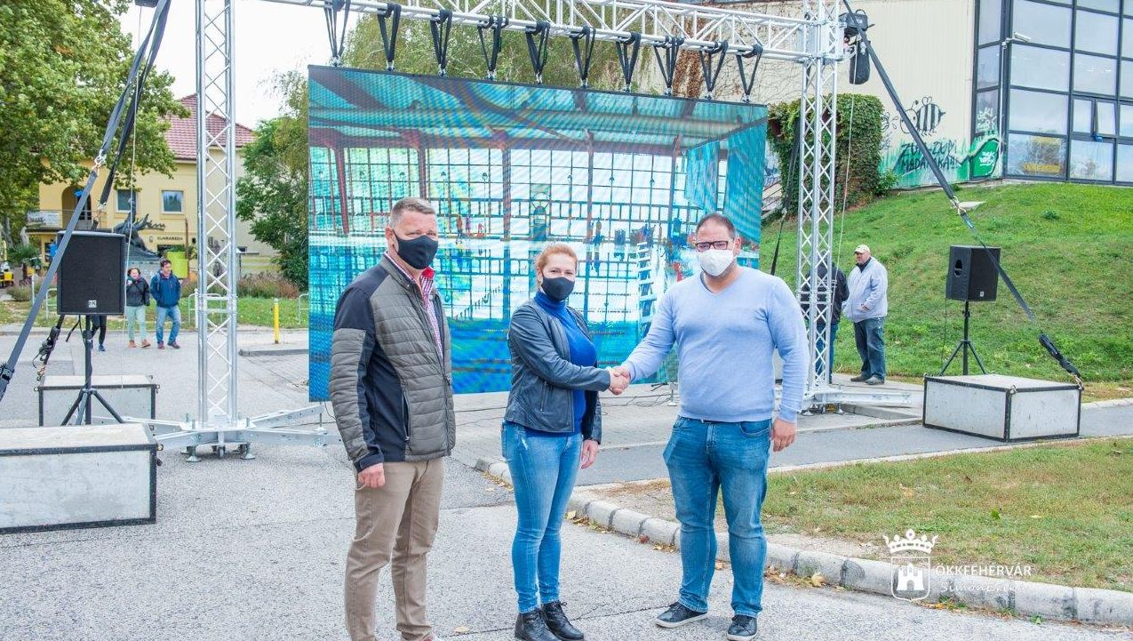 Bár első körben a Bregyó-közi sportcentrumba tervezték az LED fal felállítását, végül egy olyan eszközt sikerült beszerezni, melyet a város szinte minden rendezvényén tudja használni. Ennek avatását a Csitáry G. Emil Uszoda előtt tartották, miközben az uszodában országos kéttusa verseny zajlott éppen. Ennek eseményeit már az új kivetítőn követhették a szülők és egyéb szurkolók, akiknek a vírushelyzetben tilos volt belépni az épületbe. Mészáros Attila alpolgármester mondott köszönetet az öttusa-szövetségnek. „Mindig kiváló kapcsolatot ápolt a város, a Volán szakosztálya és a Magyar Öttusa Szövetség. Ezt számos Fehérváron rendezett világverseny bizonyította. A szövetség elnökségében jelenleg is benne vagyunk Vörös Zsuzsannával, és a jó kapcsolatnak újabb bizonyítéka ez a LED-fal. Harminc négyzetméteres, bárhol felállítható, több városi eseményen is tudjuk majd használni, reményeink szerint például jövőre a Királyi Napokon. Köszönettel tartozunk Bretz Gyula elnök úrnak, hogy a negyvenmillió forintba kerülő eszköz a Városgondnokságon keresztül a város tulajdonába kerülhetett” – mondta az alpolgármester.