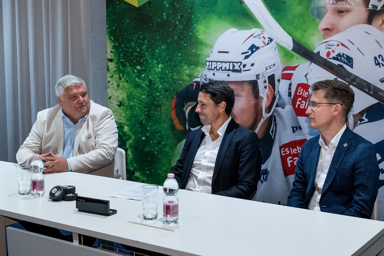 A sajtótájékoztatón dr. Cser-Palkovics András polgármester üdvözölte a támogatói megállapodást és köszöntötte az E2-t a klub szponzorai között. Elmondta, a MET Csoport, mint az Aréna névadója szezononként 150 millió forinttal támogatja a fehérvári jégkorongot, aminek harminc százaléka a jégkorongcsapatot illeti, míg kétharmada a létesítmény fenntartását segíti. Ehhez jött most hozzá az E2 részéről a 10 millió forintos támogatás. „Sokszor elmondom, hogy egy várost közösséggé két nagy terület, a kultúra és a sport formál. Aki ezeket támogatja, az a város közössége mellé áll. Szeretnénk megköszönni a MET Csoportnak, és azon belül az E2-nek, hogy ezt már több módon is teszi, hiszen eddig is komoly összeggel támogatták a MET Aréna fenntartását, és most már közvetlenül is a csapat mögött állnak. A klubnak pedig gratulálunk az új támogatóhoz és sok sikert kívánok az új idényhez. Jöjjünk minél többen szurkolni a csapatnak ebben a nagyon kemény, kiélezett és folyamatosan erősödő ligában.”