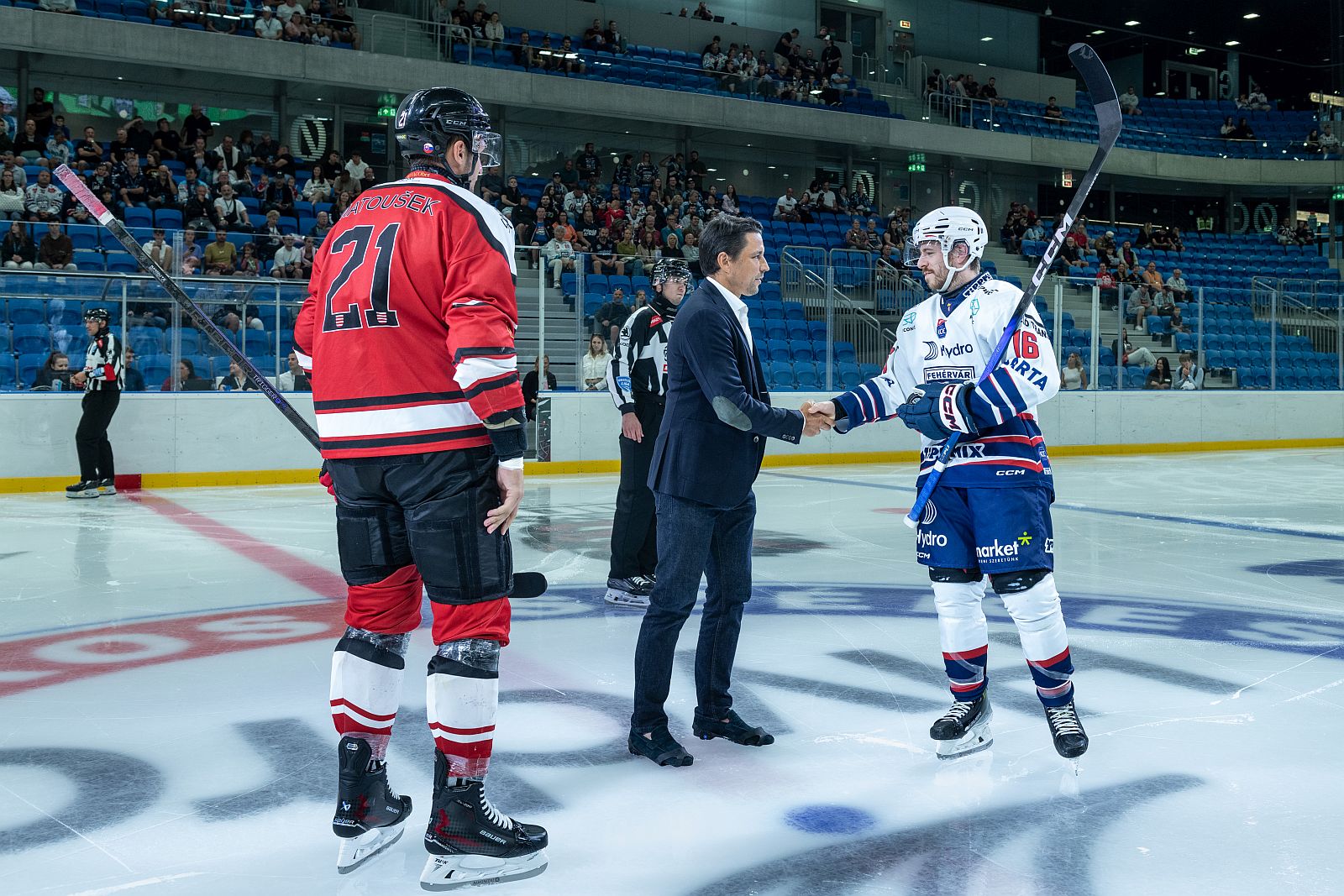 Szépfy Márton, az E2 vezérigazgatója elmondta, számukra is megtiszteltetés, hogy egy ilyen nagy hagyományokkal rendelkező és a jelenben is kimagasló eredményeket produkáló egyesület jegén láthatják a logójukat. Kiemelte, hogy a Magyarországon dolgozó kollégáik közül már sokan jártak jégkorongmeccsen és egyéb rendezvényeken is az Arénában, így számukra különösen szívmelengető ez a helyszín. „A Volán 2007 óta szerepel az osztrák bázisú ligában, ami egyben a cégcsoportunk alapítási dátuma is. Talán a székesfehérváriaknak már természetes, de hadd hangsúlyozzam, hogy amit a Hydro Fehérvár AV19 Magyarországon a jégkorongért tett és tesz, az egyedülálló. A tehetséggondozás számunkra az egyik legfontosabb érték, bízunk benne, hogy a most megkötött 10 millió forintos támogatás csak a kezdet, és dolgozni fogunk azon, hogy ez ne csak egyéves, hanem hosszú távú partneri viszony legyen. Örülök, hogy mi is hozzájárulhatunk a csapat sikereihez. Remélem, hogy jó szezon vár ránk!”