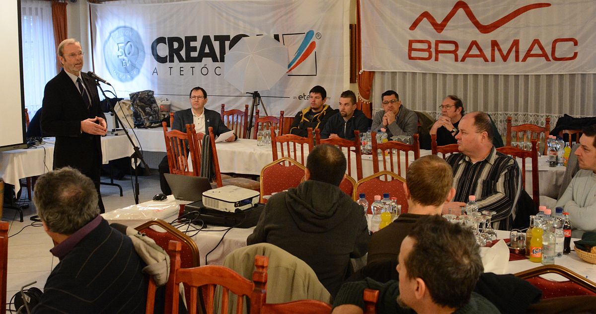 Csizmadia Tibor a szervező Fehérvár Tető Kft ügyvezetője kiemelte, hogy az előadók zöme a gyártói körből került ki, hiszen a mai piaci helyzetben a gyártók és a termékek fejlesztői tudnak igazán újat mondani a kivitelezőknek, amit igyekszünk mindig kihasználni, hiszen évről-évre jelennek meg olyan anyagok, technológiák, amit muszáj bemutatni és megismerni.