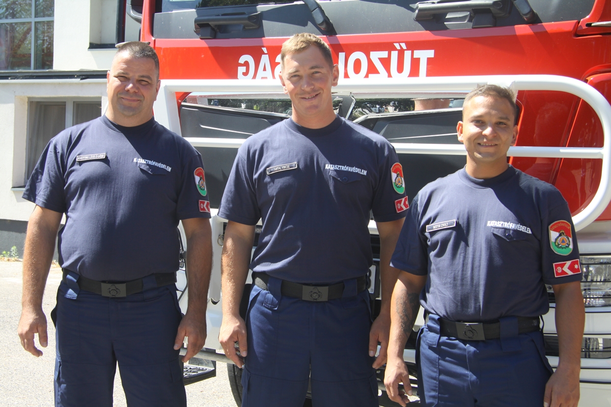 Kusztora László Dávid tűzoltó őrmester a dunaújvárosi, Antal Vincze tűzoltó őrmester és a Bostai Zsolt tűzoltó őrmester a székesfehérvári hivatásos tűzoltó-parancsnokságon teljesít szolgálatot.