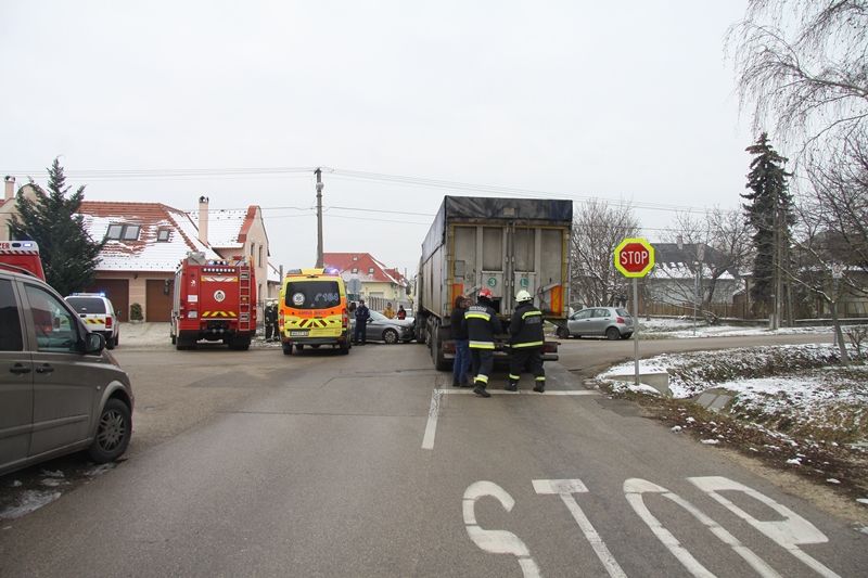 Kamion és autó ütközött kedden a Tompa Mihály utca és a Kertalja utca kereszteződésében. A rakomány nélküli kamion az autó oldalának hajtott, majd az autó az elejével nekicsapódott a kamionnak.