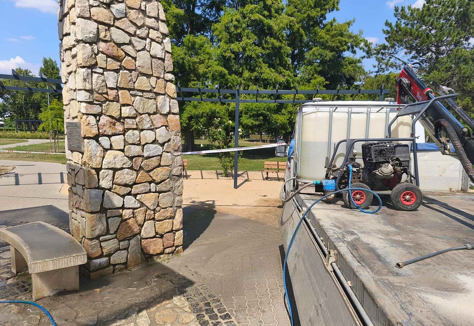 Újabb értelmetlen rongálás – a Csitáry-kút oszlopát fújták össze festékkel