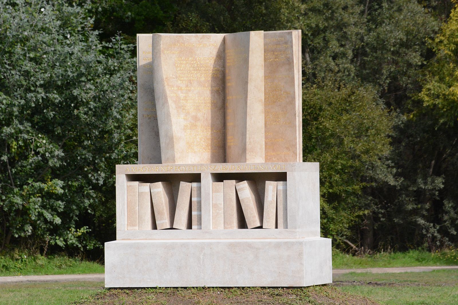 Egy könyvet és egy könyvespolcot formált meg Melocco Miklós szobrászművész, amely több helyen nyitva van, lapjain az összes érmes neve olvasható.