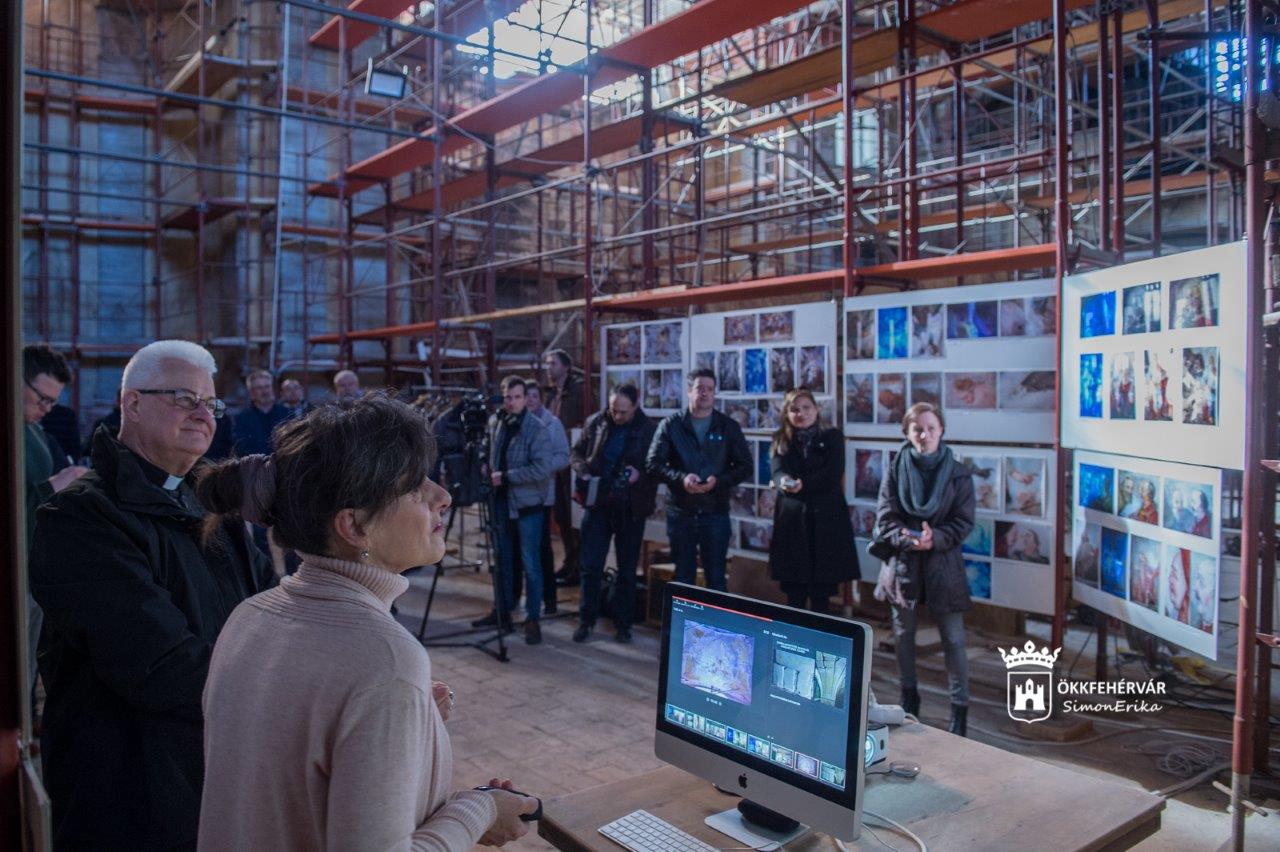 A bejáráson Jeszeniczky Ildikó Munkácsy Mihály-díjas festő-restaurátorművész a freskók feltárása és tisztítása során készült fotók segítségével ismertette az eddigi eredményeket.