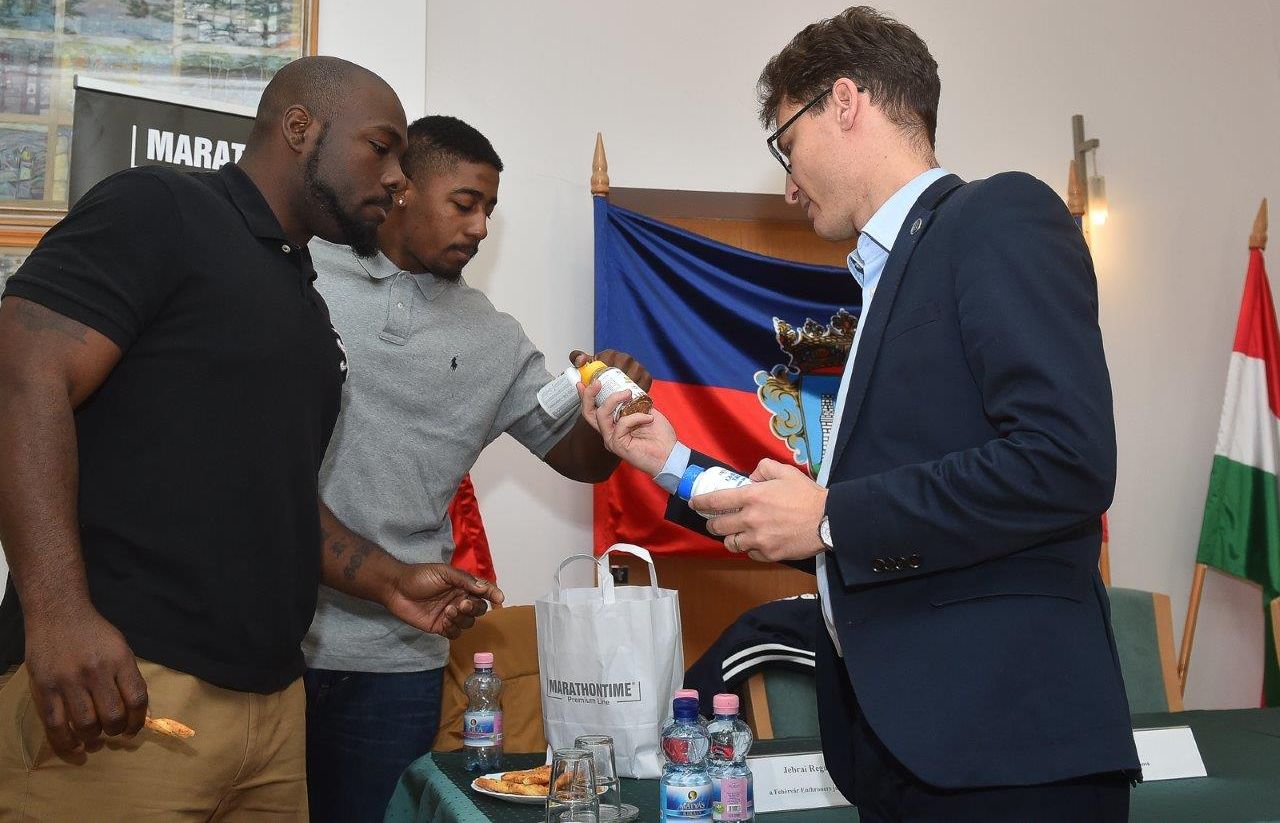 A beszédeket követően Habalin Balázs átnyújtotta az első havi vitamincsomagot Jebrai Regannek és Antonio Roanenak. A szerdai eseményen dr. Bóka Viktor, Székesfehérvár jegyzője is jele volt. Mint a tájékoztatón elhangzott: a Fehérvár Enthroners december 4-én, vasárnap délután 15.00 órakor villanyfényes barátságos meccset játszik a Budapest Eagles ellen. Külön érdekessége lesz ennek a találkozónak, hogy a klub új igazolásai, Jebrai Regan, Antonio Roane, Oscar Sap, Kevin Sap és Remy Sap először lépnek pályára a klub színeiben – utóbbi három játékos ráadásul most első ízben szerepel Hollandián kívül egy csapatban. A mérkőzésnek a First Field ad otthont.