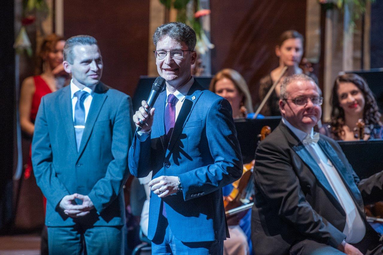 Dr. Cser-Palkovics András polgármester újévi köszöntőjében örömét fejezte ki, hogy hagyománnyá vált Székesfehérváron e koncert. „Közösségünknek fontos, hogy az új évet kulturális élménnyel, egy gyönyörű koncerten a zene erejével és örömével indítsuk el. Nehéz esztendőt zártunk, amelyben nehéz döntéseket kellett meghoznunk. Ebből az egyik, hogy ezt az épületet, a Vörösmarty Színházat ez után a koncert után hosszabb időre be kell zárnunk. Viszont jó hír a rossz hír után, hogy rövidebb időre, mint amiről a döntés szól, hiszen kényszerű okok miatt március végében gondolkodtunk, de ezt most előre tudjuk hozni, így március 1-jétől ismét ki fogjuk nyitni a színház kapuit, hogy előadásokkal, koncertekkel várhassák a művészek a közönséget Fehérvárról és a régióból.”