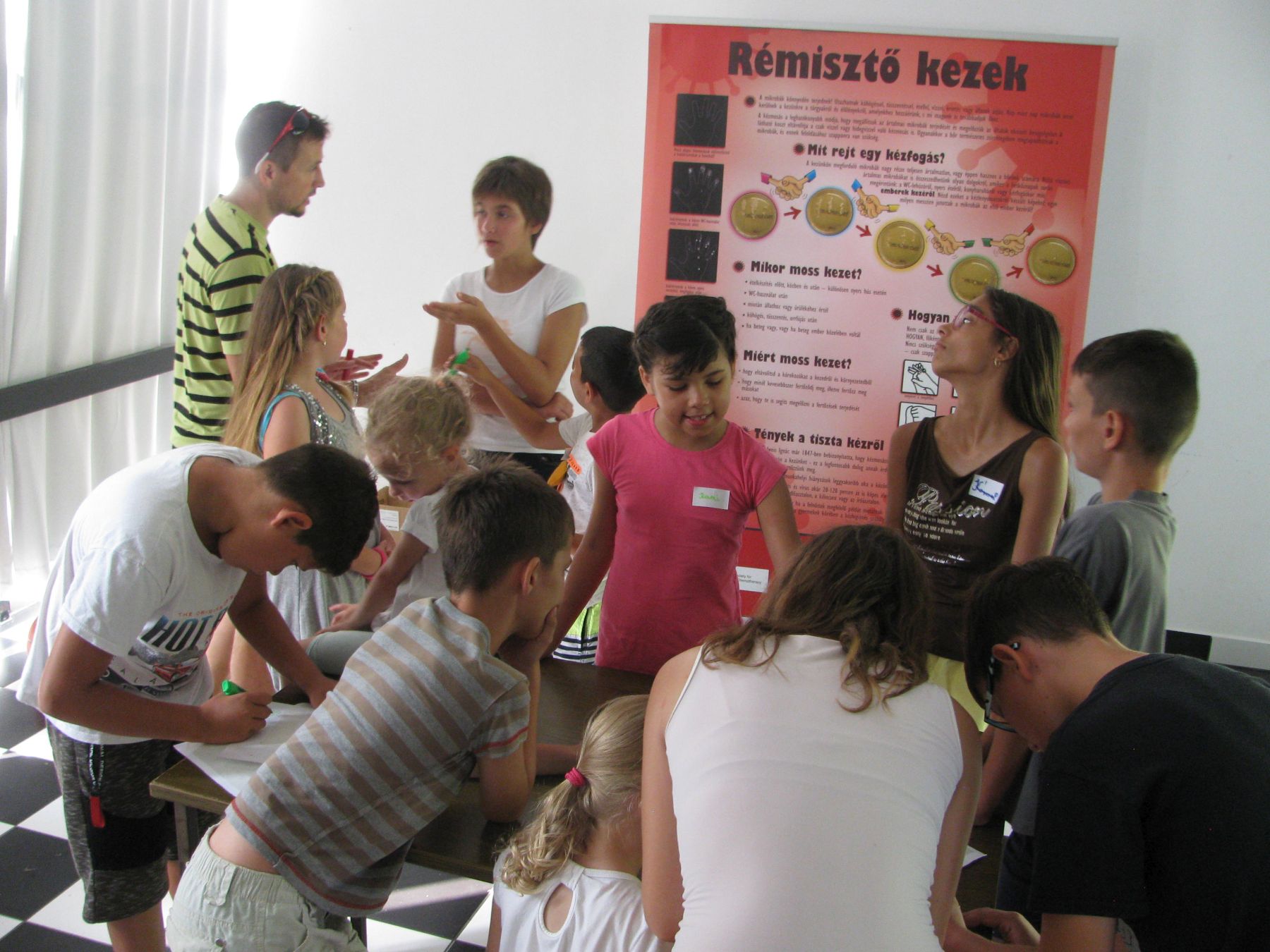 Szintén vendégként érkezett a táborba a Fejér Megyei Kormányhivatal Népegészségügyi Főosztály egészségfejlesztő munkatársa, Marton János, aki a gyerekek egészségkultúráját fejlesztette játékos módszerekkel, külön kiemelve a kezek tisztaságának fontosságát és a hűtést igénylő élelmiszerekkel kapcsolatos szabályokat.