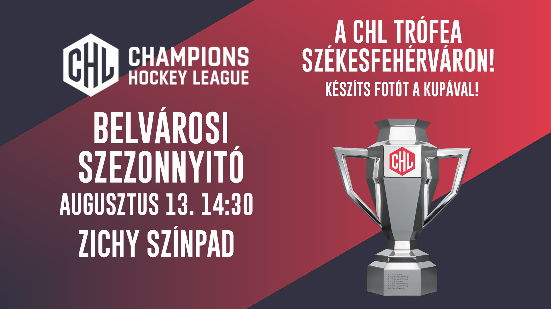 A klub elnöke közönségtalálkozóra hívta a szurkolókat: a CHL belvárosi szezonnyitót augusztus 13-án szombaton 14.30-tól tartják a Zichy ligetben, ahol a CHL bajnoki trófeáját is megtekintheti a közönség, valamint találkozhatnak a csapattal és az új játékosokat is megismerhetik.