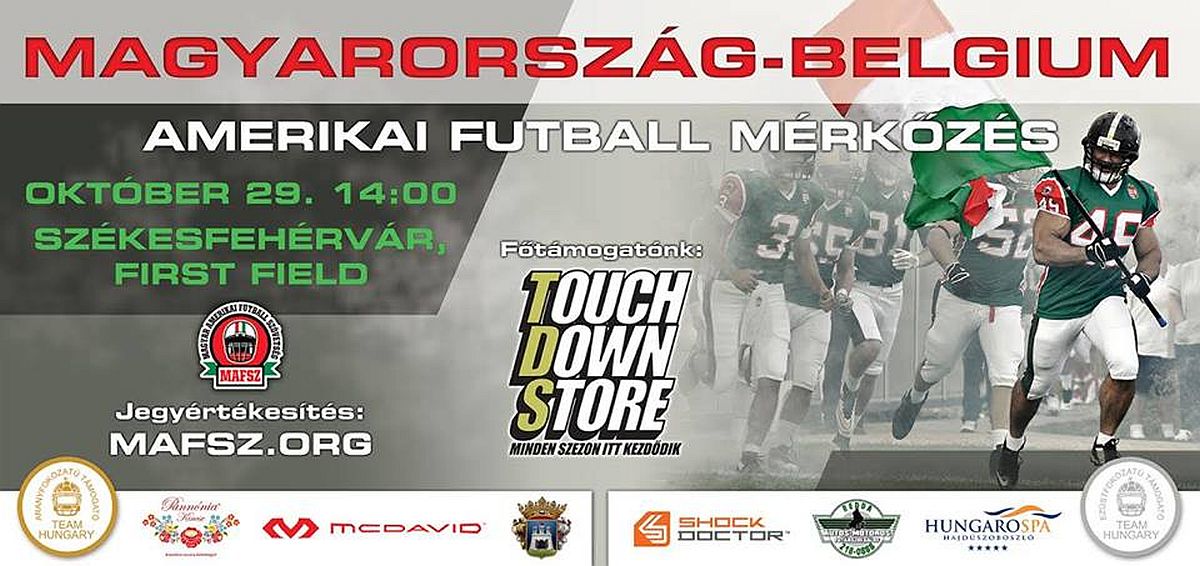 Október 29-én, szombaton délután 14.00 órától ismét hazánk legjobb amerikai focistái kápráztatják el a közönséget a First Fielden. Bencsics Márkék Belgium ellen küzdenek a legjobb eredmény eléréséért. Belgiumban régóta jelen van a sportág, válogatottjuk több meccsen is megméretteti magát – legutóbb Spanyolországot verték idegenben 14:6-ra. A rutinos erőkből álló belga alakulat ellen tehát kiélezett összecsapás vár a magyar csapatra, amely története második győzelmére hajt.
