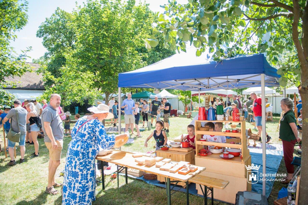 A templomudvarban egész napos kézműves kirakodóvásárral, zenés népi színpadi programokkal, gyermekprogramokkal várták a családokat, a Kézművesek Házánál a juhászmesterség és a fegyverkovács mesterség eszközeit, fortélyait mutatták be, míg a Rác utca 15. udvarán az egyesület Asszonyműhelyének munkájába nyerhettünk bepillantást.